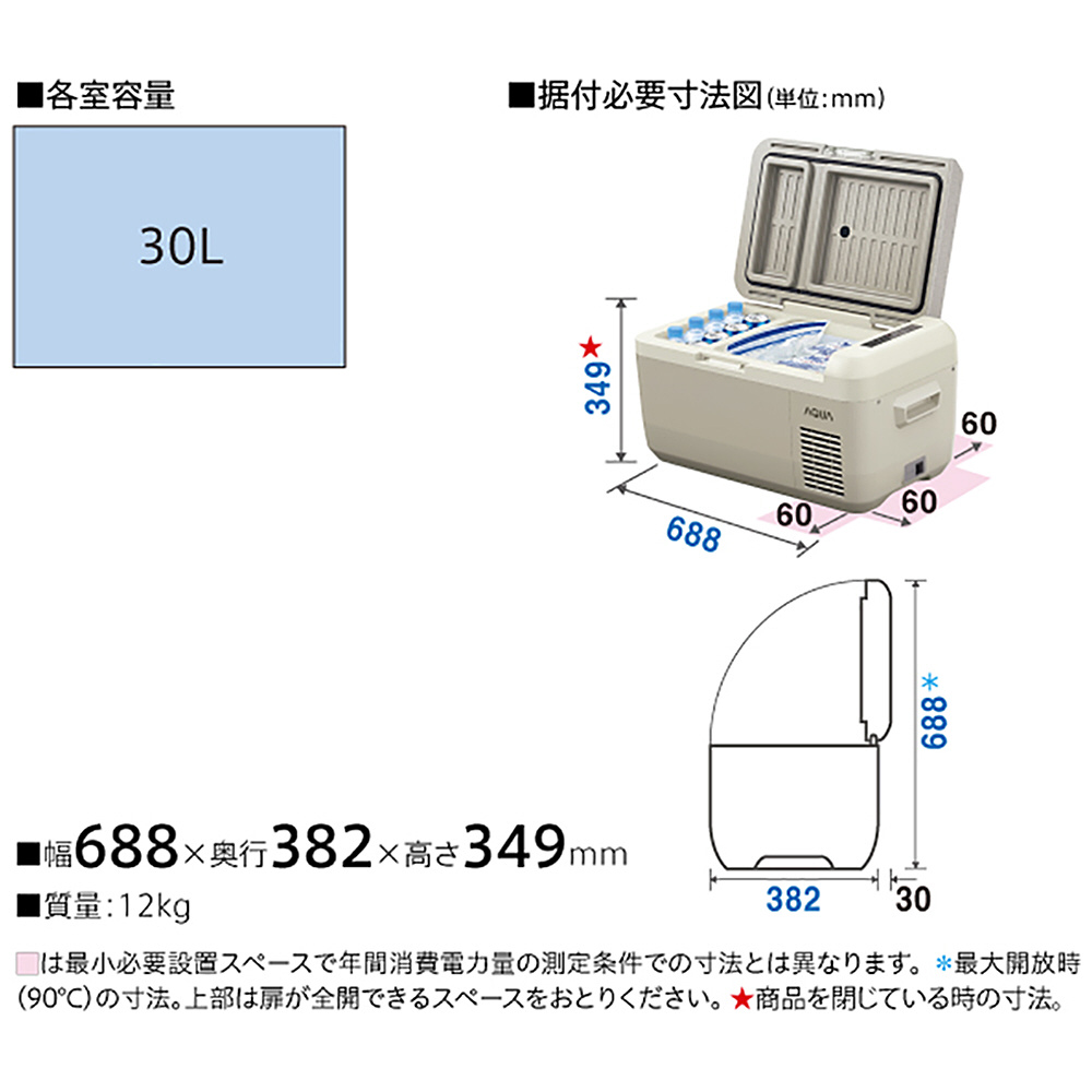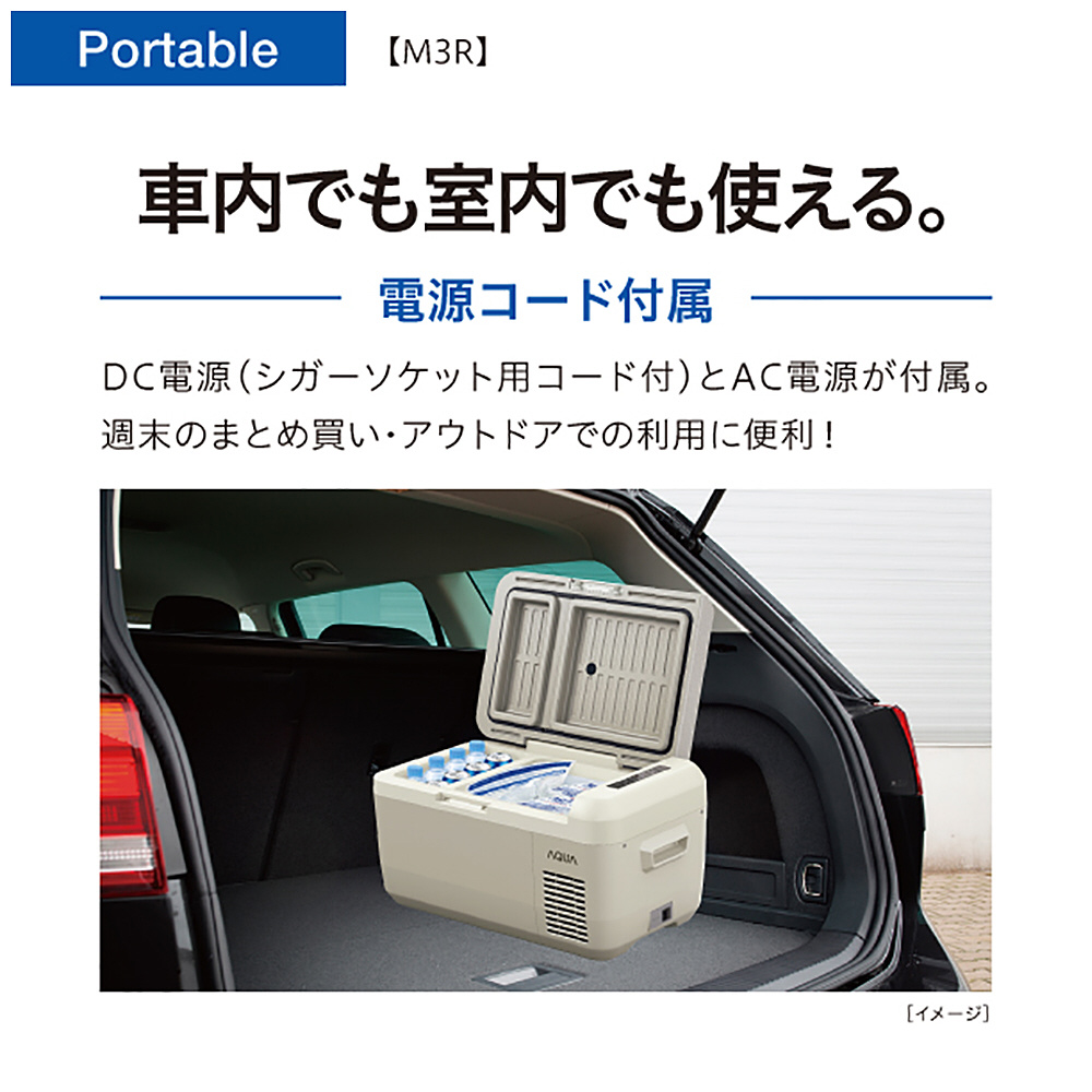 | 商品名 | ポータブル冷蔵庫 グレージュ AQP-M3R-H [幅68.8cm /30L /1ドア /上開き /2024年] |