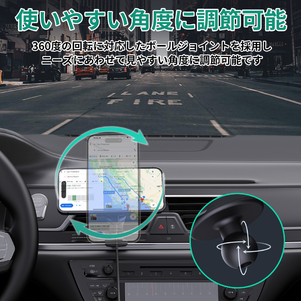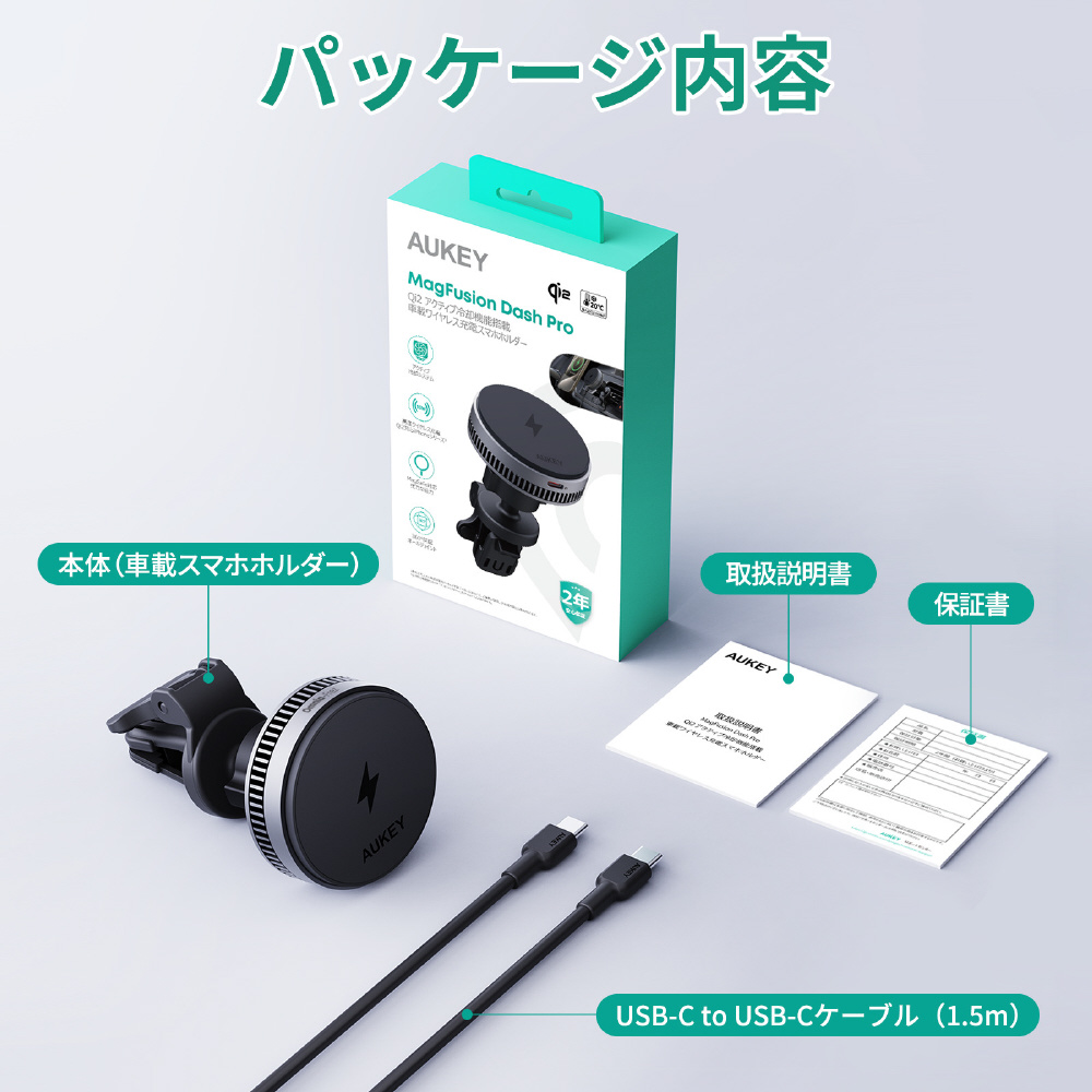 ※本製品単体では充電を行うことができません。15Wの急速充電には27W出力以上のPD(USB Power Delivery)対応のUSB-Cカーチャージャーが別途必要です。