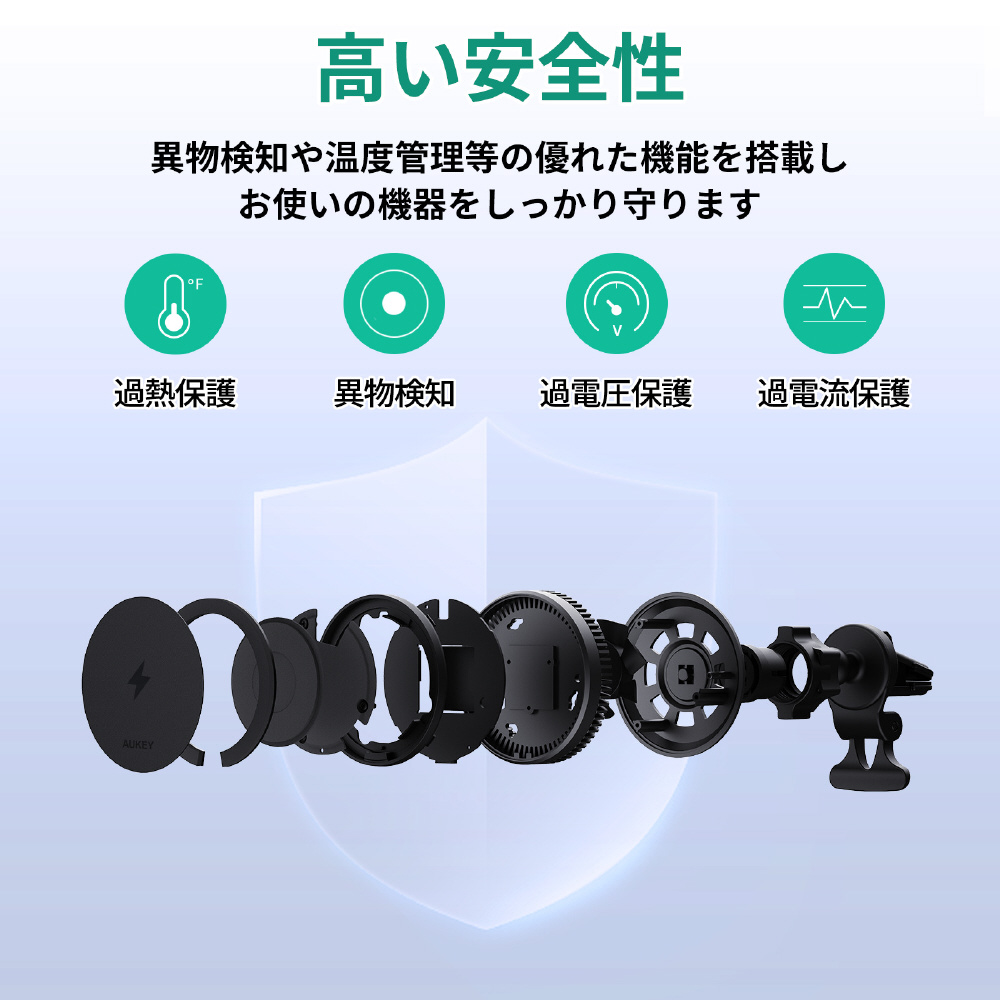 MagSafe機能搭載iPhoneシリーズに強力な磁力で正確な位置にピタッと吸着し、安全に安定したワイヤレス充電をおこなえます。