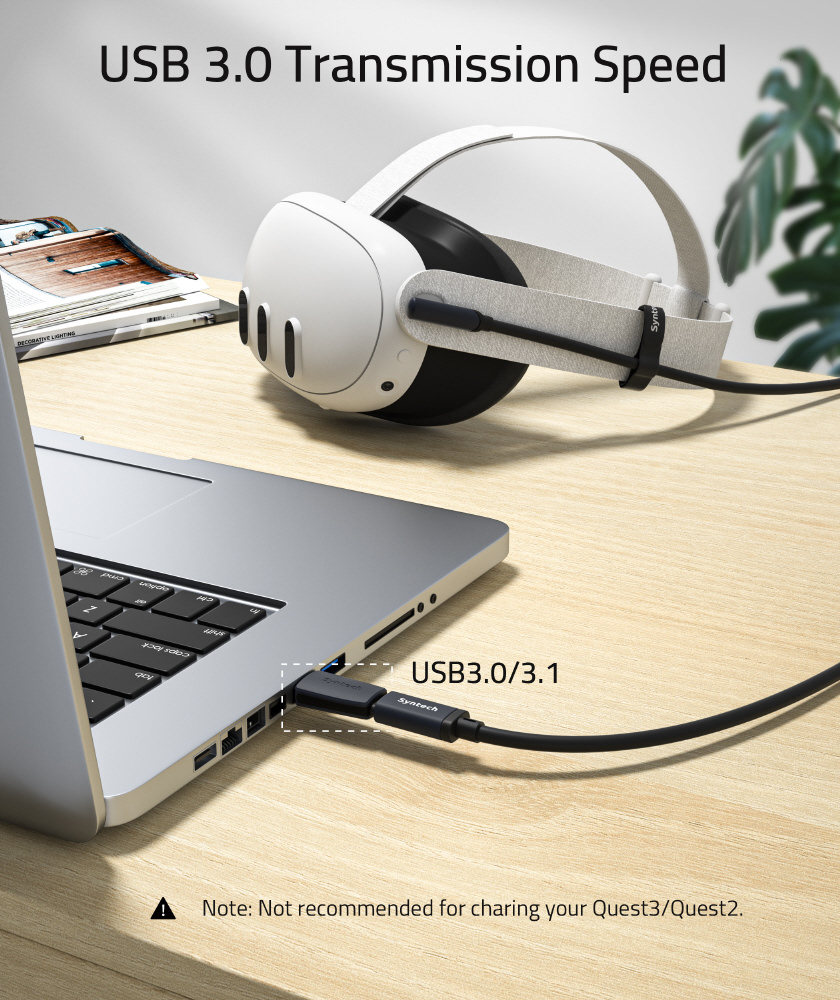 Meta Quest 3S対応 / PICO 4 Ultra対応 / Meta Quest 3対応 Syntech Linkケーブル 2in1 接続ケーブル 5mリンクケーブル 使用時充電可能 ブラック C100-B