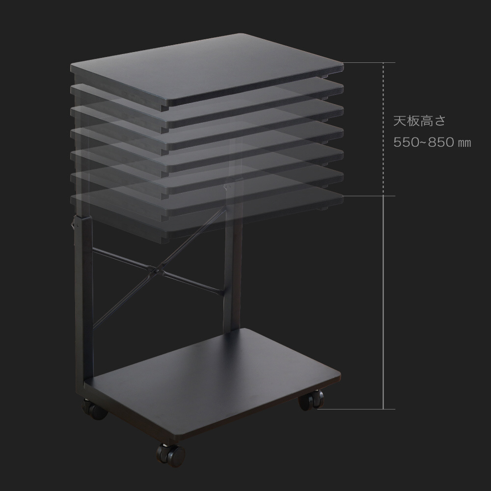 7段階の高さ調節ができるキャスター付きワゴン