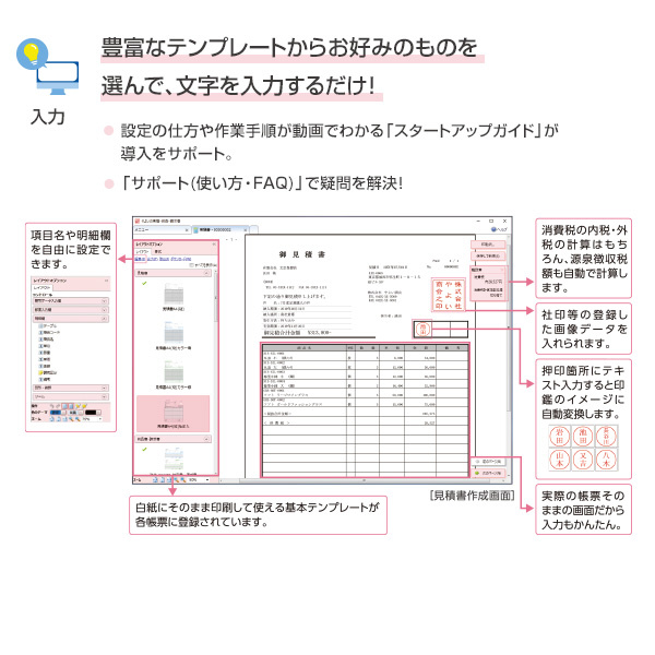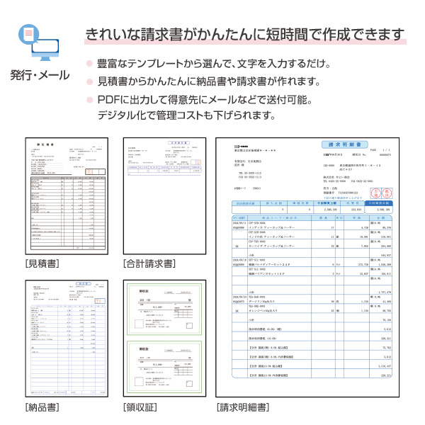 買ったその日からだれでもかんたんに見積書・納品書・請求書がつくれる。
