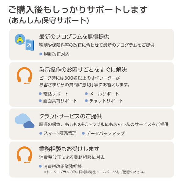 | 仕様3 | [プリンター]上記日本語OSに対応したプリンター ※インクジェットプリンターについては機種および使用できる専用用紙に一部制限があります。 ※ドットインパクトプリンターの場合は15インチ(印字桁数が136桁)連続用紙が使用できるプリンターが必要です。 ※やよいの給与計算、やよいの見積・納品・請求書においては、ドットインパクトプリンターは対象外です。 |