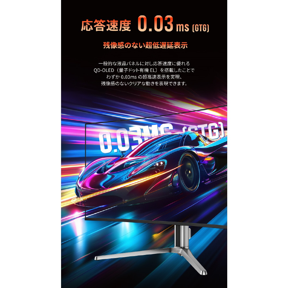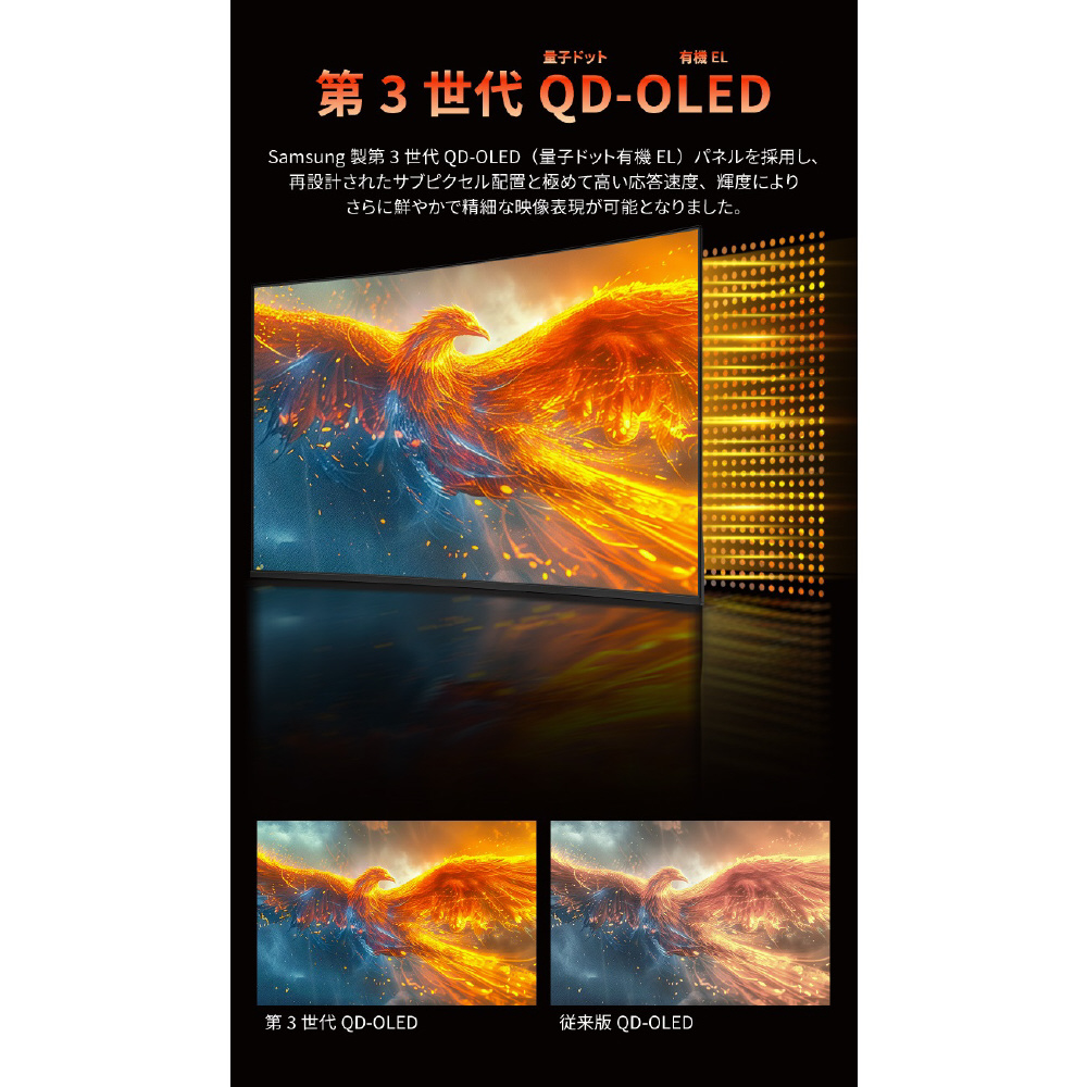 最新のQD-OLED(量子ドット有機EL)パネルが誇る極めて高い応答速度と輝度により、美麗なグラフィックと高速低遅延なゲームプレイを両立しています。
