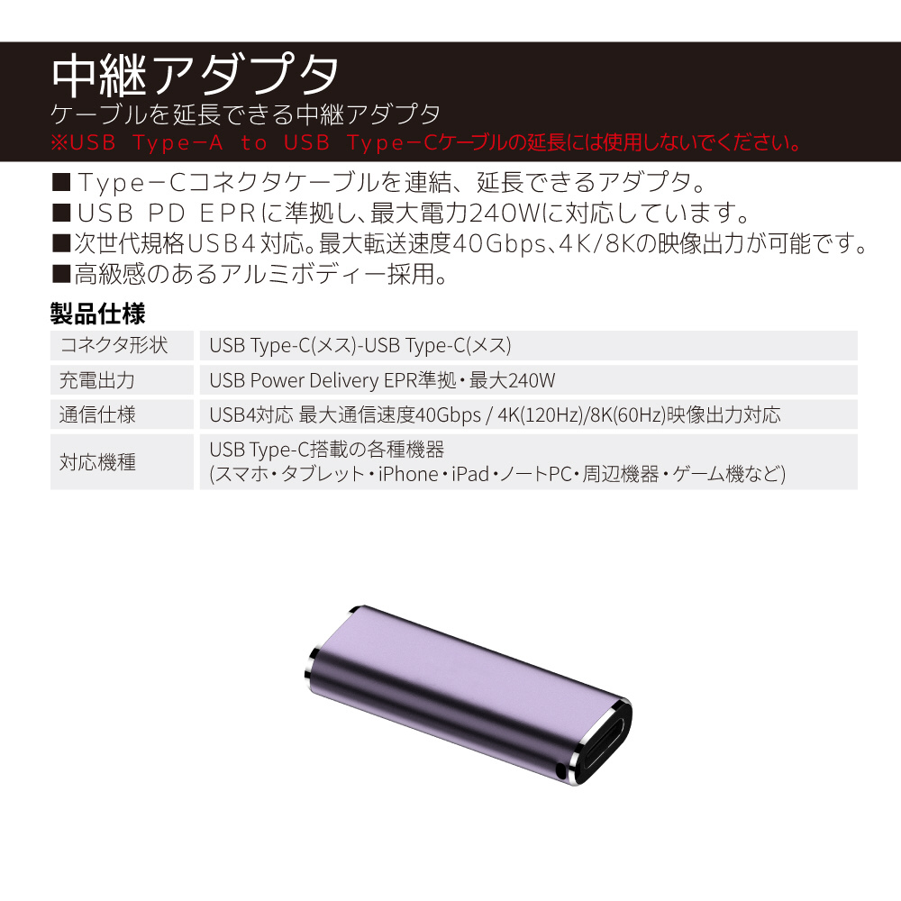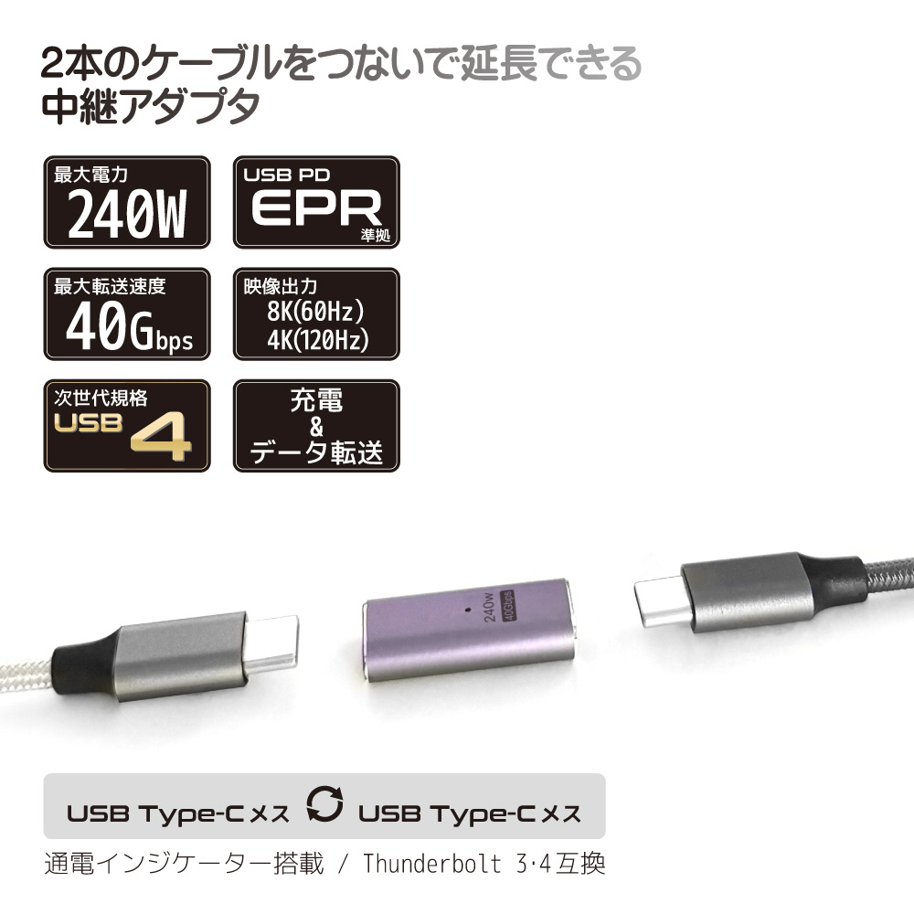 Type-C変換アダプター 中継ストレート(メス-メス) PD EPR240W FUSB-CCA07C
