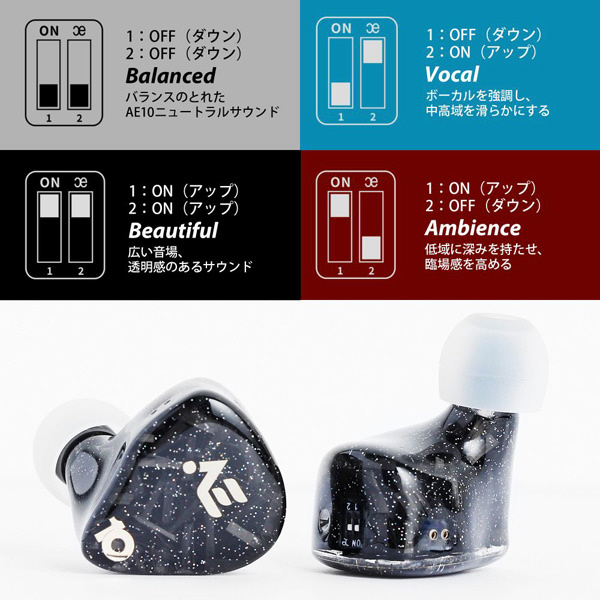 AE10の開発は、イヤホン設計における最新鋭の技術とトレンドに従い、幅広いリスナーのために理想的なチューニングを反映しています。