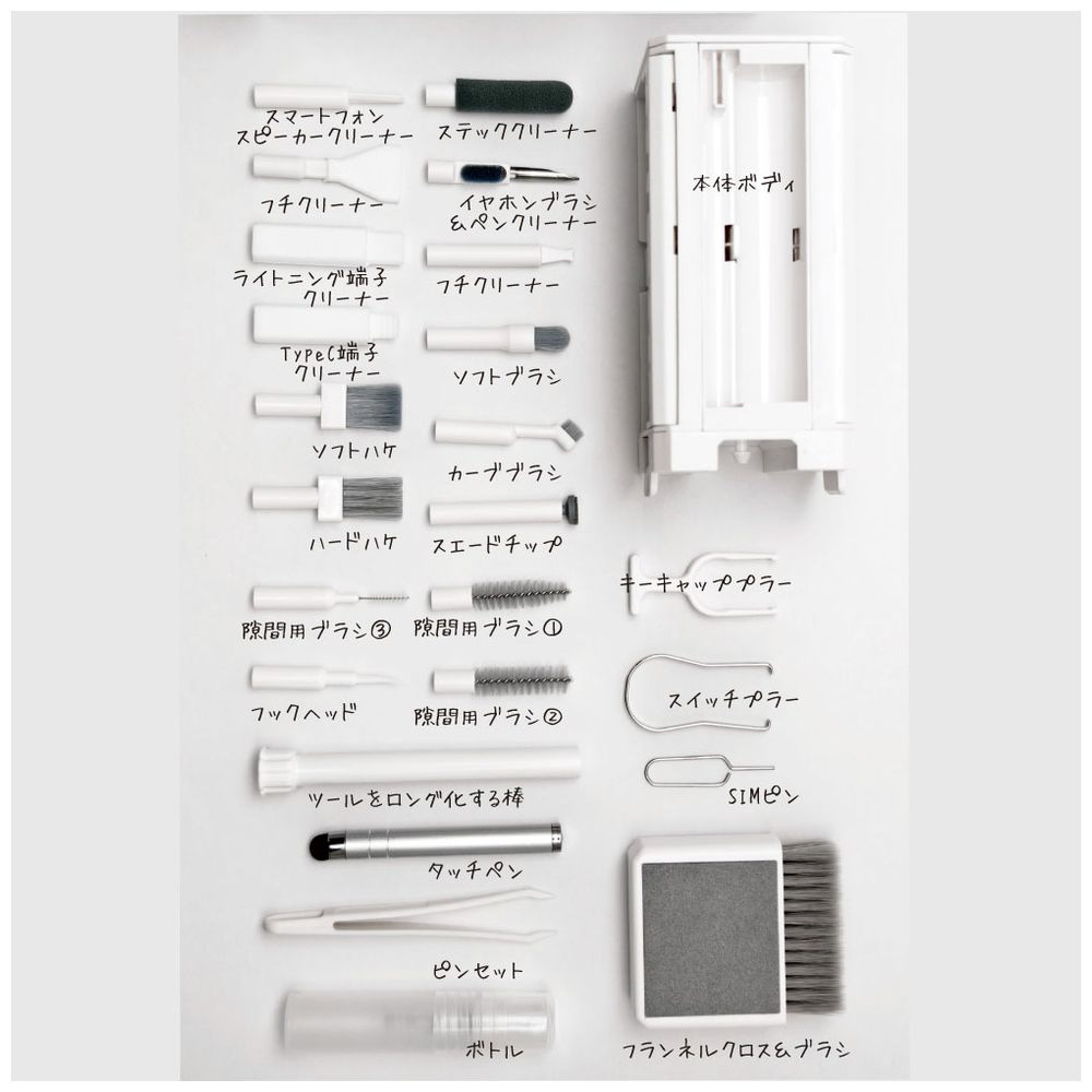 多種多様のクリーニングツールを集結。かゆいところに手が届くクリーニングキットの決定版!パソコン・スマートフォン・イヤホンのお掃除に大活躍。