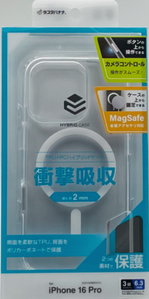 iPhone16 Pro カメラコントロール機能付き ハイブリッドケース TPU×PC Magsafe対応 クリア 8576IP461PHPMCCL