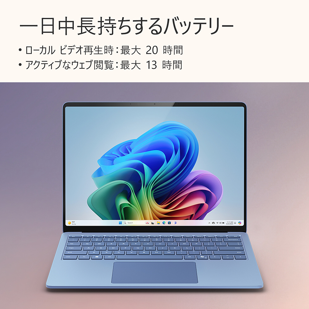 速くなっただけではなく、よりスマートに。AI でパワーアップした第 7 世代 Surface Laptop、Copilot+ PC なら、次世代のパフォーマンスと Copilot エクスペリエンスを思いのままに駆使して、制限なく仕事、遊び、創作に取り組めます