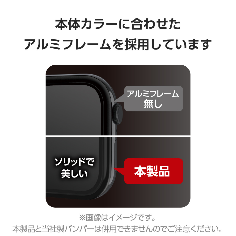 Apple Watch本体との一体感が美しいアルミフレーム付き画面保護ガラスフィルムです。