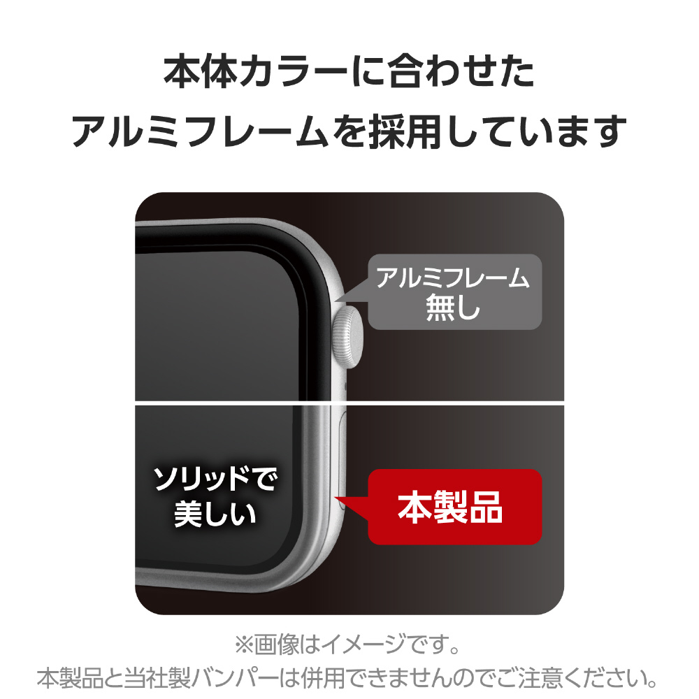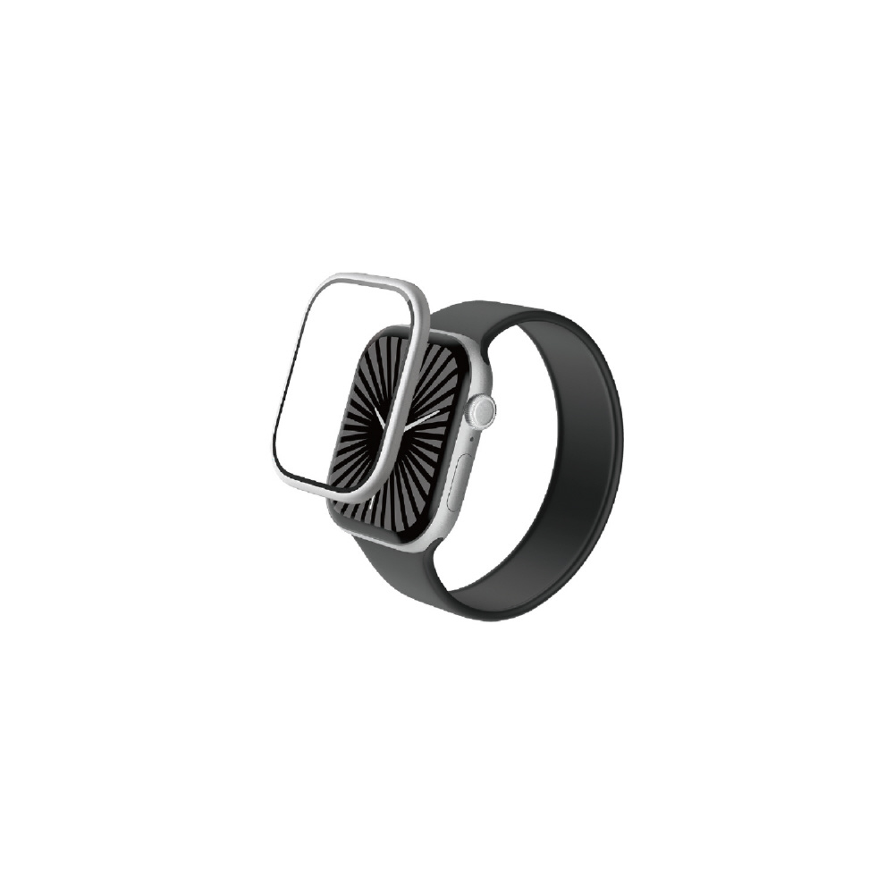 Apple Watch本体との一体感が美しいアルミフレーム付き画面保護ガラスフィルムです。