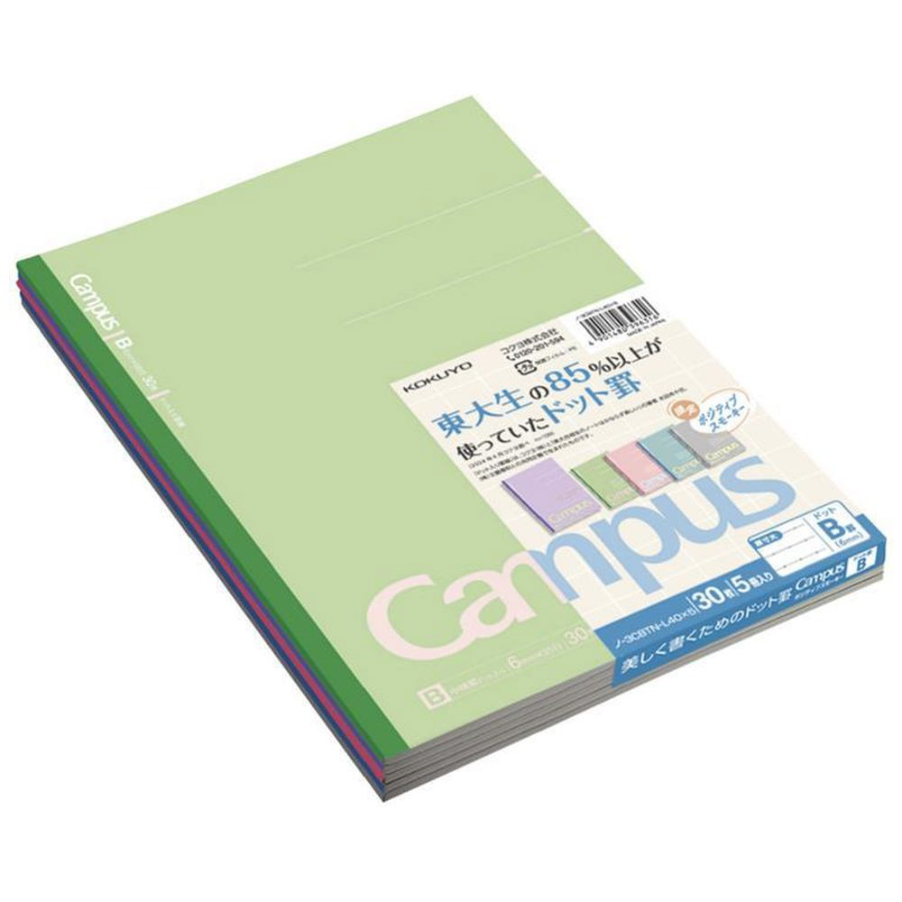 | 商品名 | 【限定】キャンパスノート(ポジティブスモーキー) 5色パック [セミB5・B5/6mm(B罫)/ドット入り罫線] 3CBTN-L40X5 |