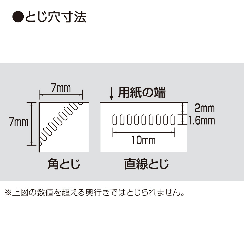 ●コピー用紙(PPC用紙)約5枚をとじることができます。