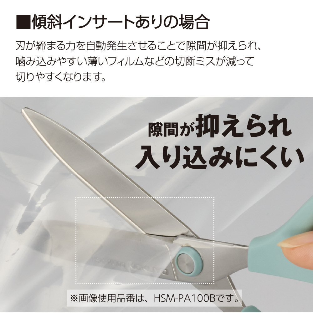 ●刃の隙間発生を抑えるコクヨの独自設計、傾斜インサート搭載で、薄いものの切断ミスを低減。