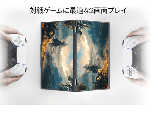 ■接続されたデバイスの画面をそのままデュアルモバイルディスプレイに映し出すミラーリング機能に対応しています。PC本体画面と、同じ映像をモバイルモニター2画面に表示する3画面ミラーリングやPC本体画面とモバイルモニター画面2つで異なる映像を映し出すことも可能です。
