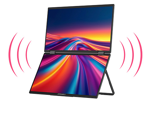 15.6インチのフルHD(1920x1080)解像度、IPSパネルを2枚搭載したデュアルモバイルディスプレイです。携帯性と機能性に優れており、ワーケーションや外出先、自宅のリビングなど、大きなディスプレイが置きづらい環境でも、USB-Cケーブル1本で簡単に最大3画面のマルチディスプレイ環境を構築できます。ノートPCのように折りたためるため、使用しない場合は収納しておくことができ、高い生産性と収納性を実現します。