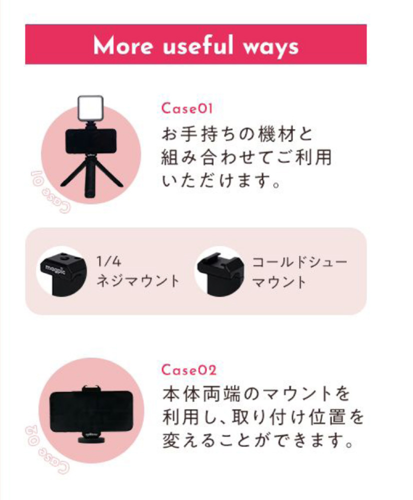 どこでも、いつでも、誰でもマグネットを付けて手軽に撮影することができるスマホホルダーです。