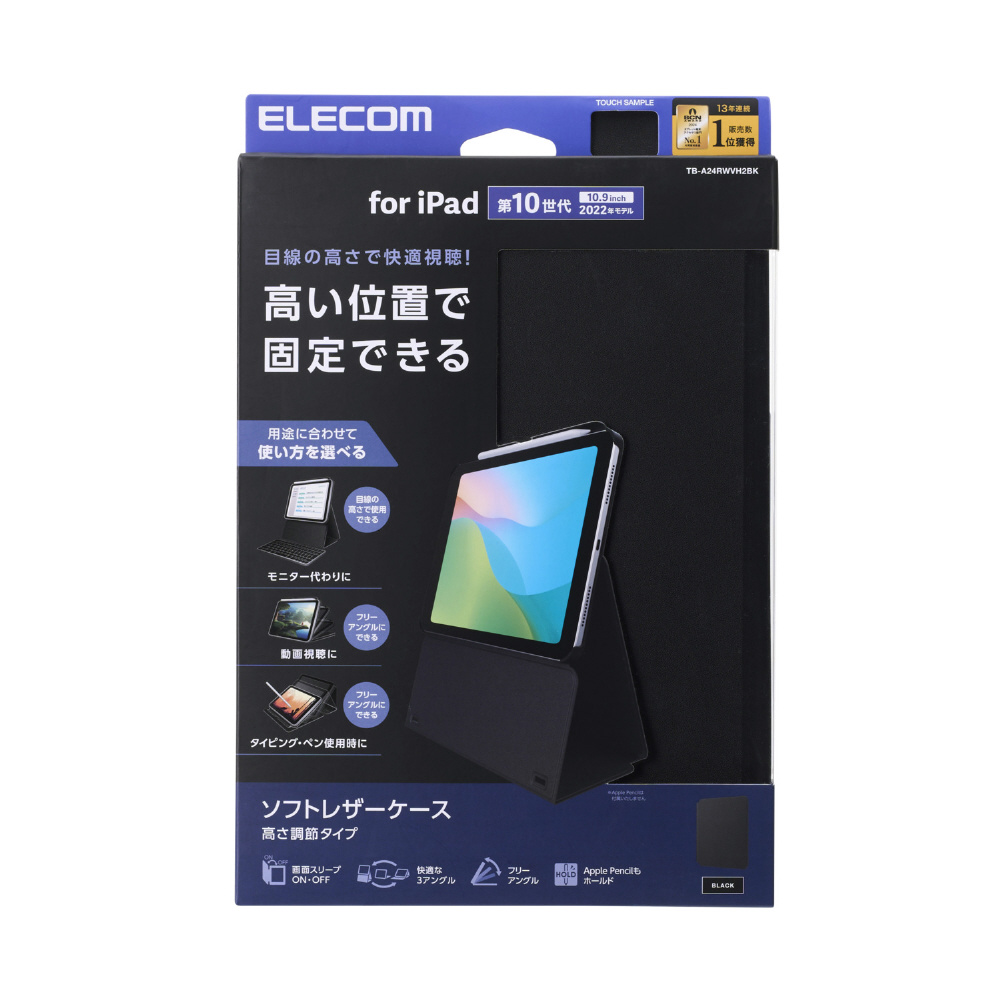 11インチ iPad(A16)、10.9インチ iPad(第10世代)用 フラップケース ソフトレザー 高さ調整 スリープ対応 ブラック TB-A24RWVH2BK