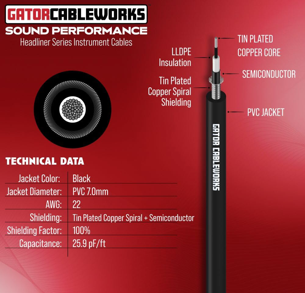 Cableworks by Gator Cases ケーブルワークス シールドケーブル ギター/ベース兼用 Headliner Series (10ft S/S) GCWH-INS-10