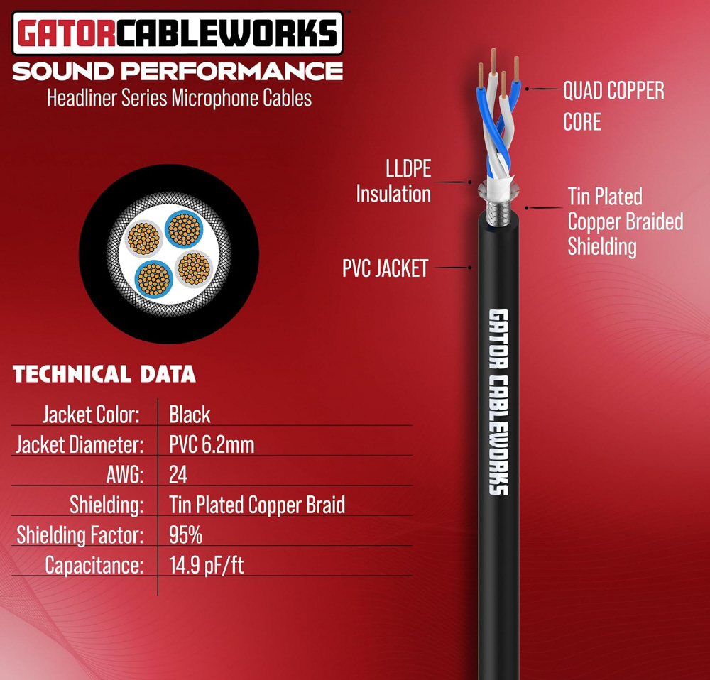 Cableworks by Gator Cases ケーブルワークス マイクケーブル Headliner Series (30ft XLR/XLR) GCWH-XLR-30