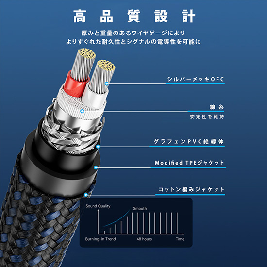 スタイリッシュな見た目と耐久性を両立したHi-Fi XLRケーブルです。