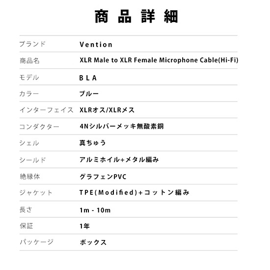 | 形状 | XLR(キャノン) - XLR(キャノン) |