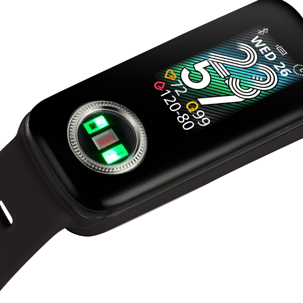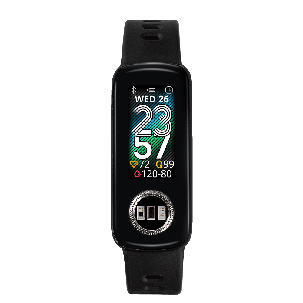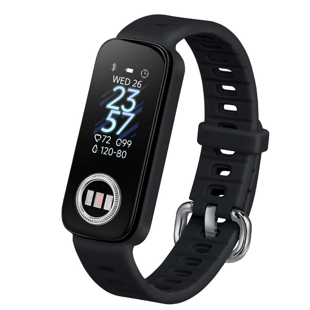 センサーに指を置くだけで、脈波伝播時間と血中酸素濃度をリアルタイムで正確に測定できるスマートリストバンドです。