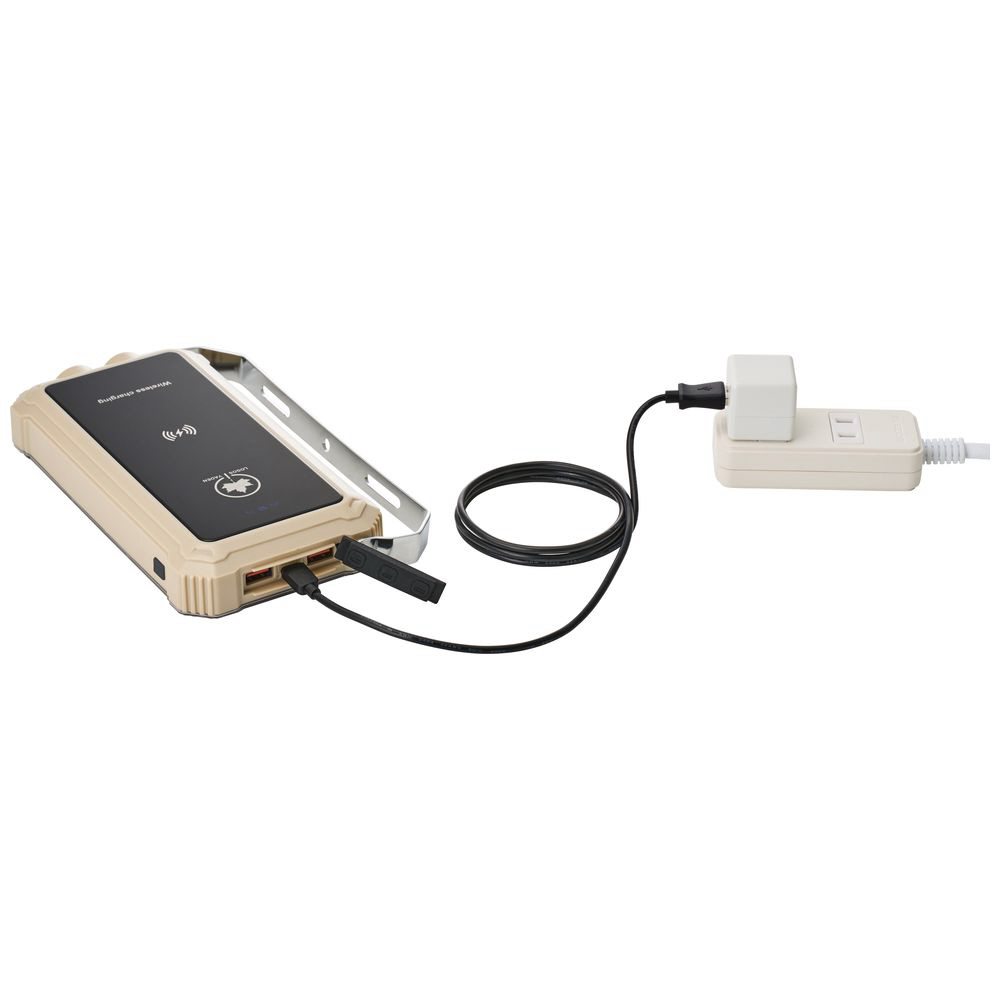 20,000mAhの大容量パワーバンク搭載で、スマートフォンを最大約8台分充電できる。