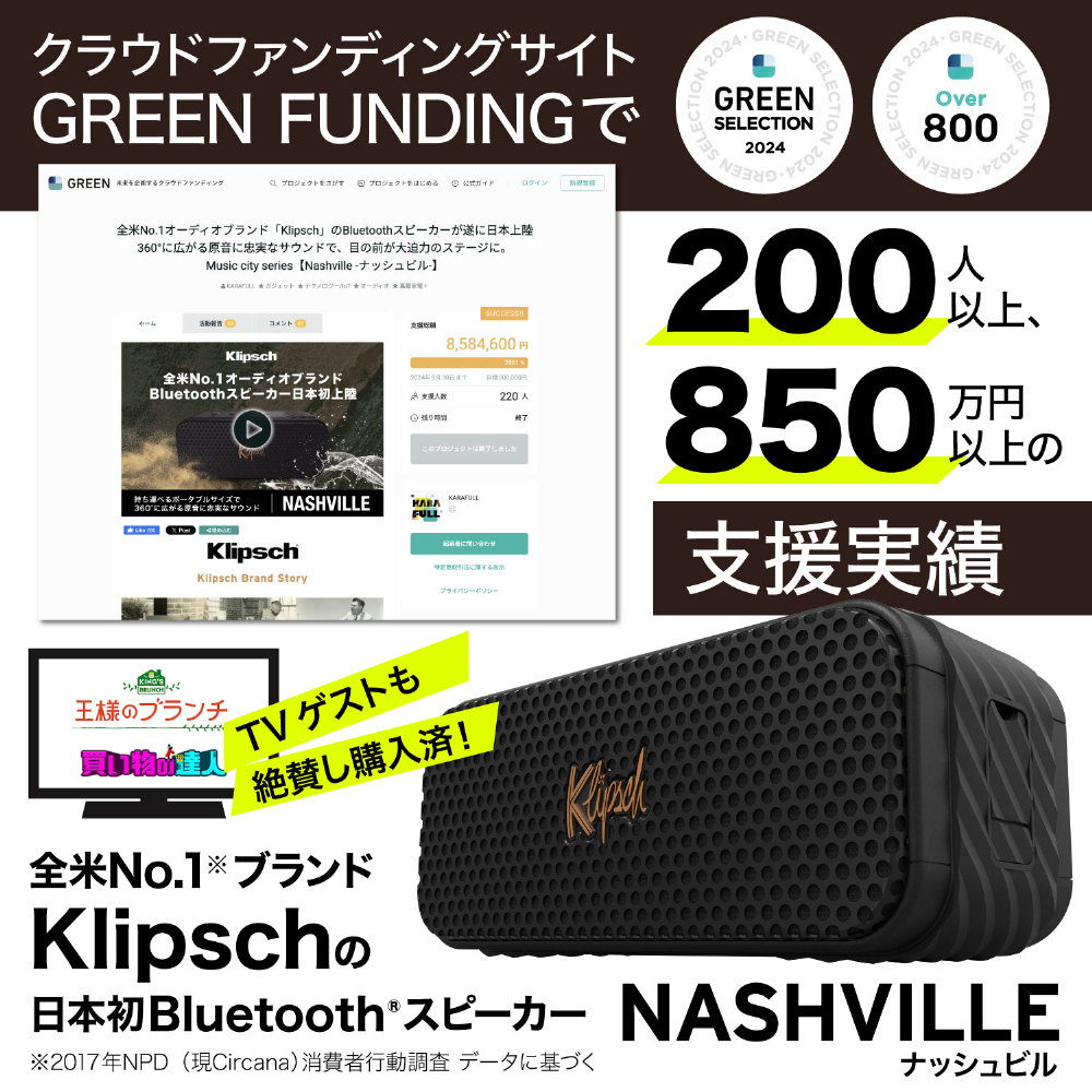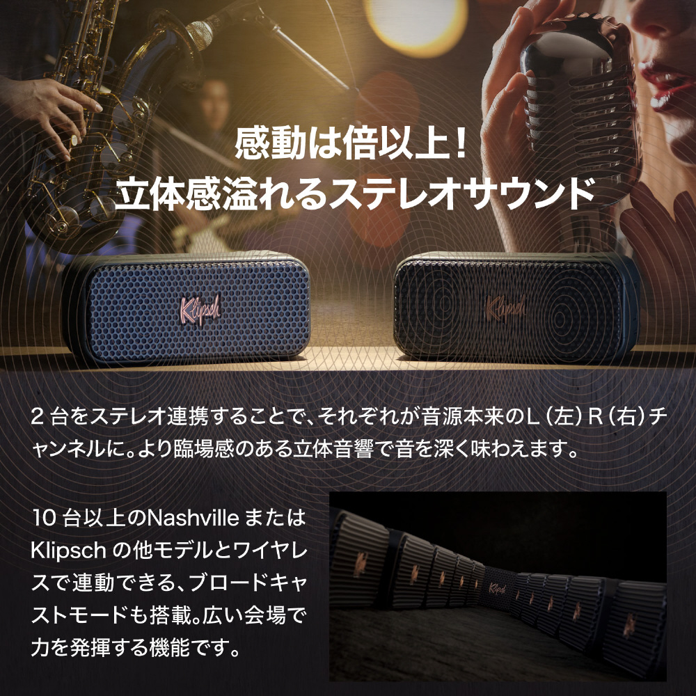 また、10台以上のNashvilleまたはKlipschの他モデル(Austin、Detroit)とワイヤレスで連動できるブロードキャストモードも搭載。