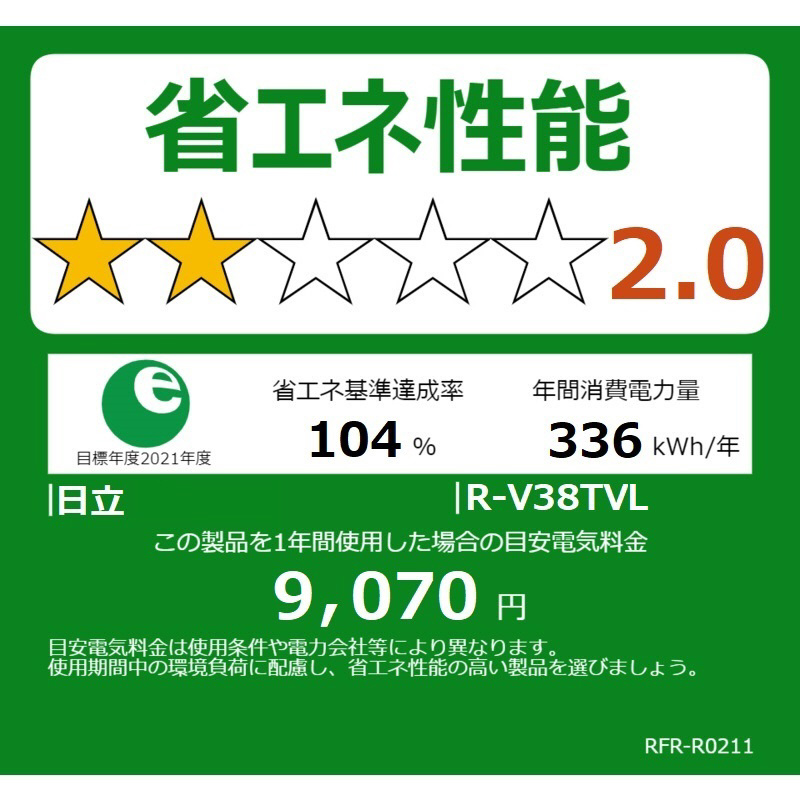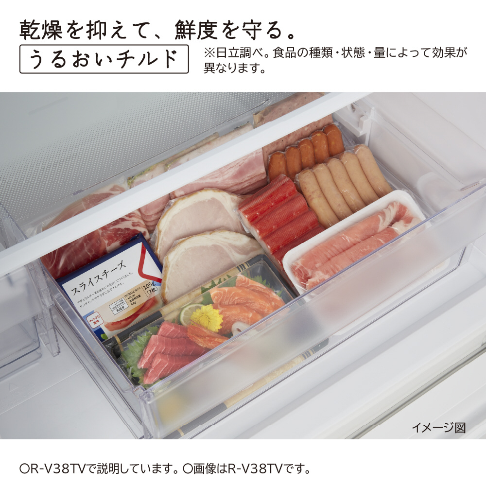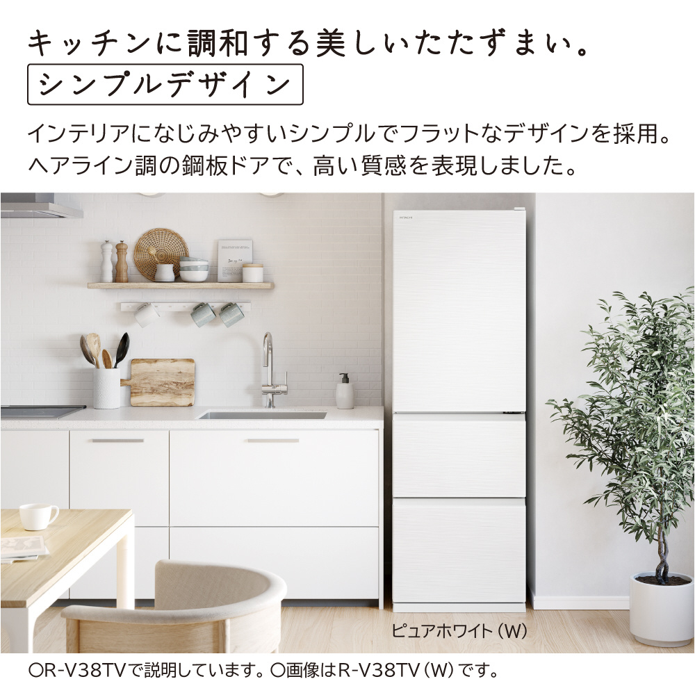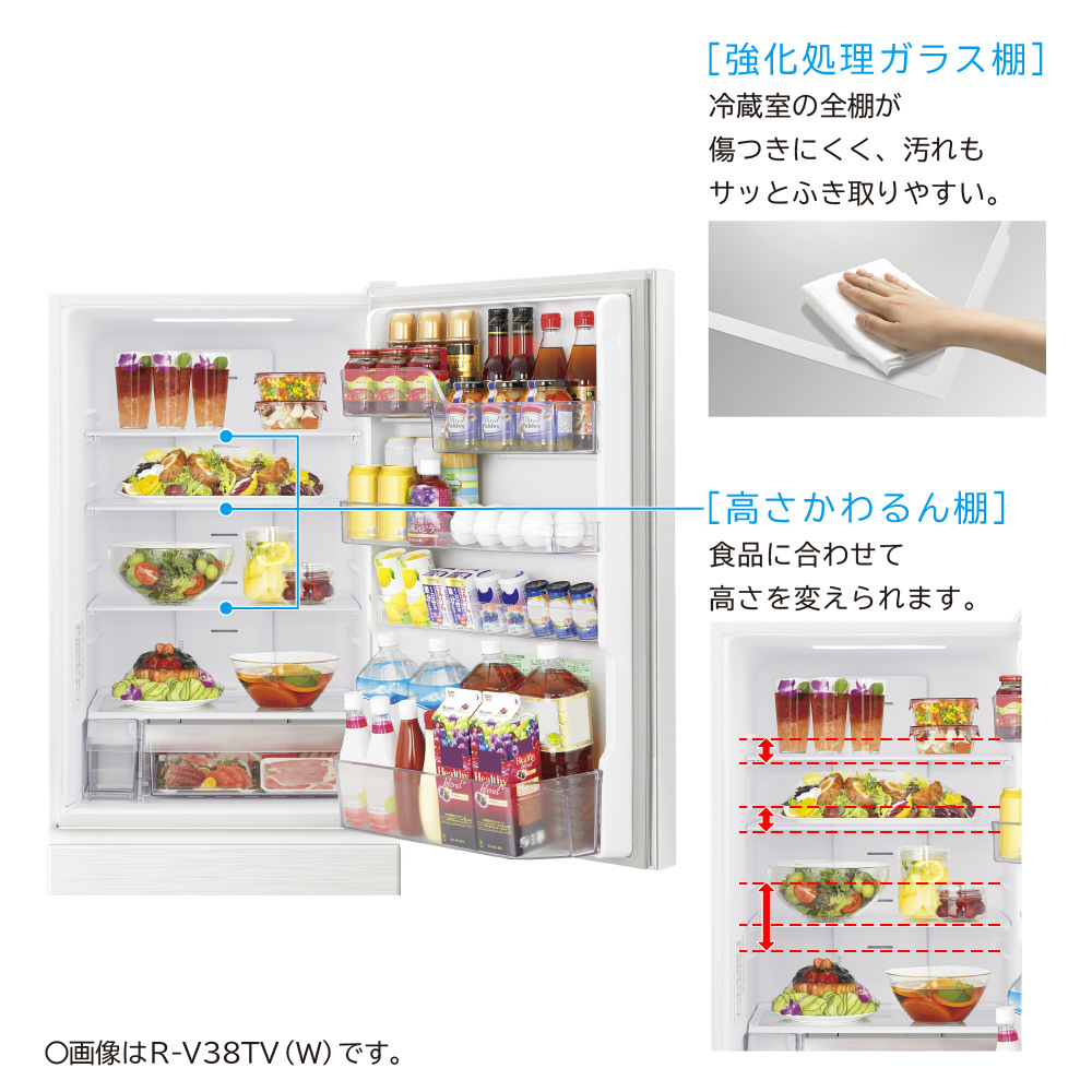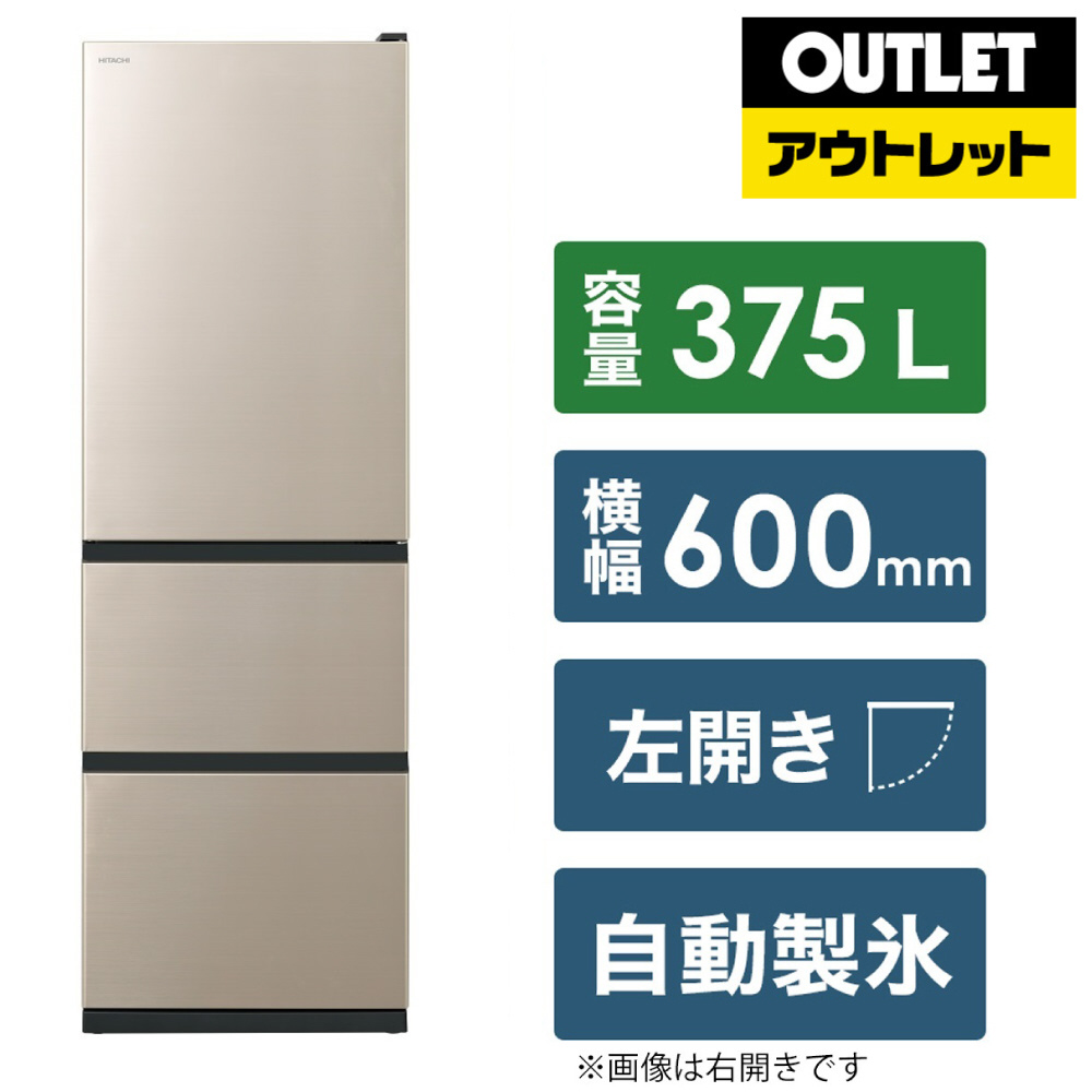 冷蔵庫 Vタイプ ライトゴールド R-V38TVL-N [幅60cm /375L /3ドア /左開きタイプ /2023年]【生産完了品】【基本設置料金セット】