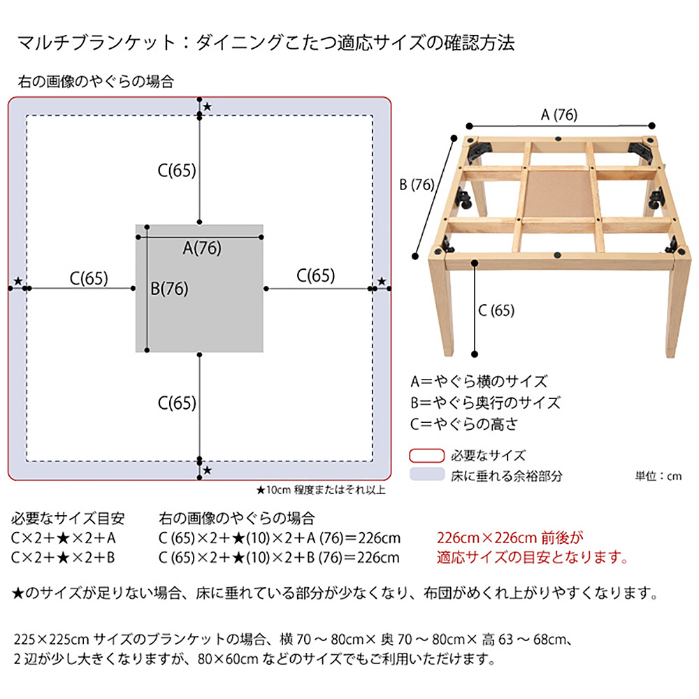 対応するこたつサイズ:横70〜80×奥行70〜80×高さ63〜68cm