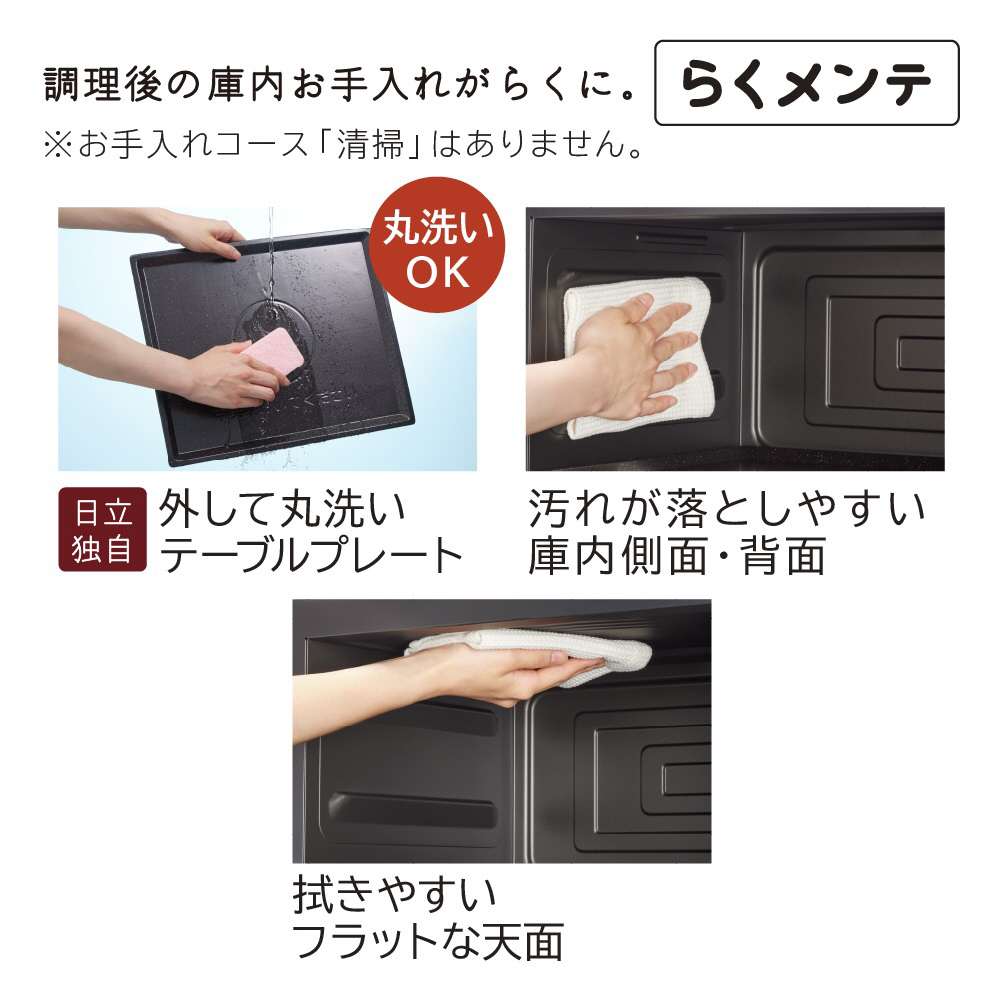 お手入れ簡単、27Lワイド&フラット庫内オーブンレンジ