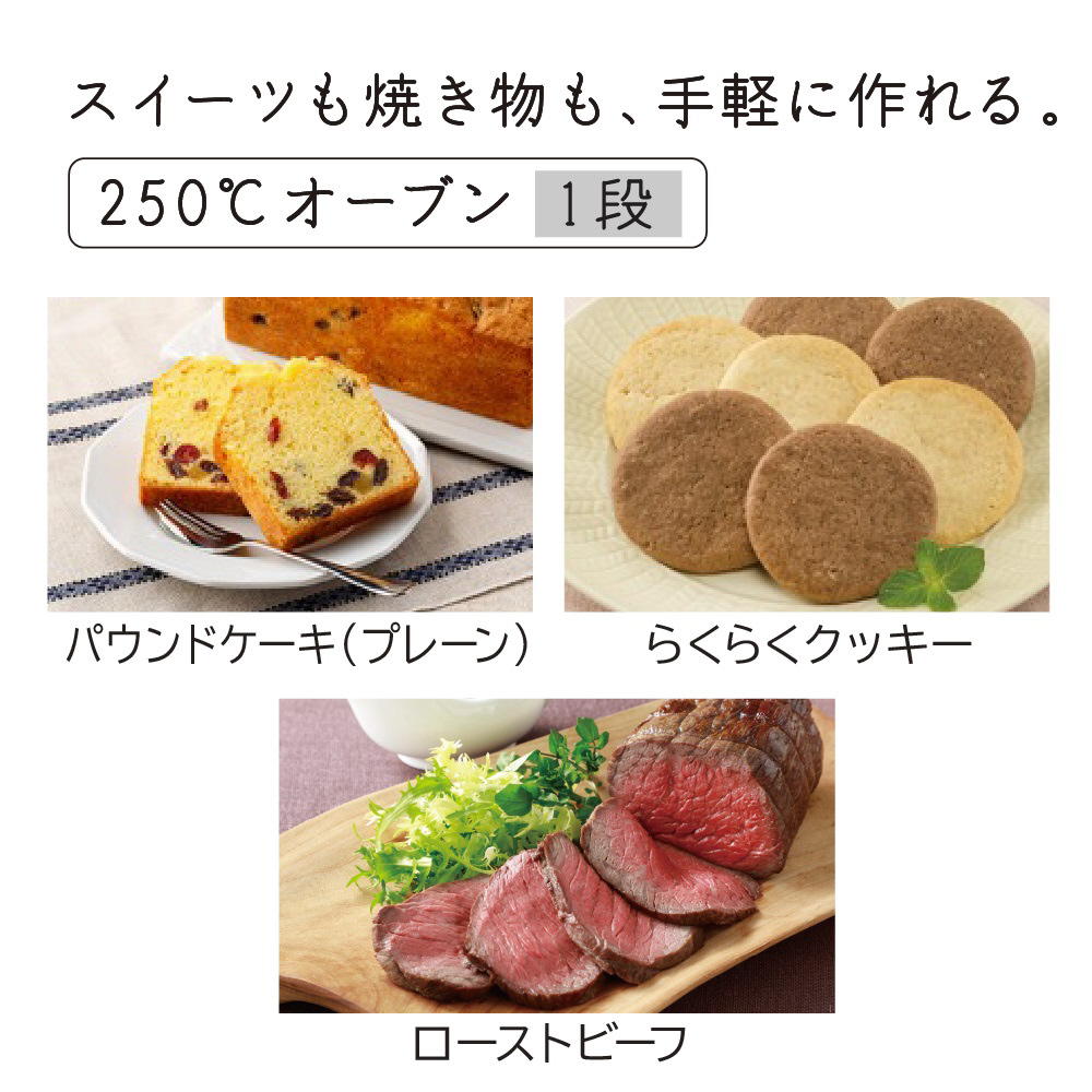 スイーツも焼き物も手軽に作れる250℃オーブン1段