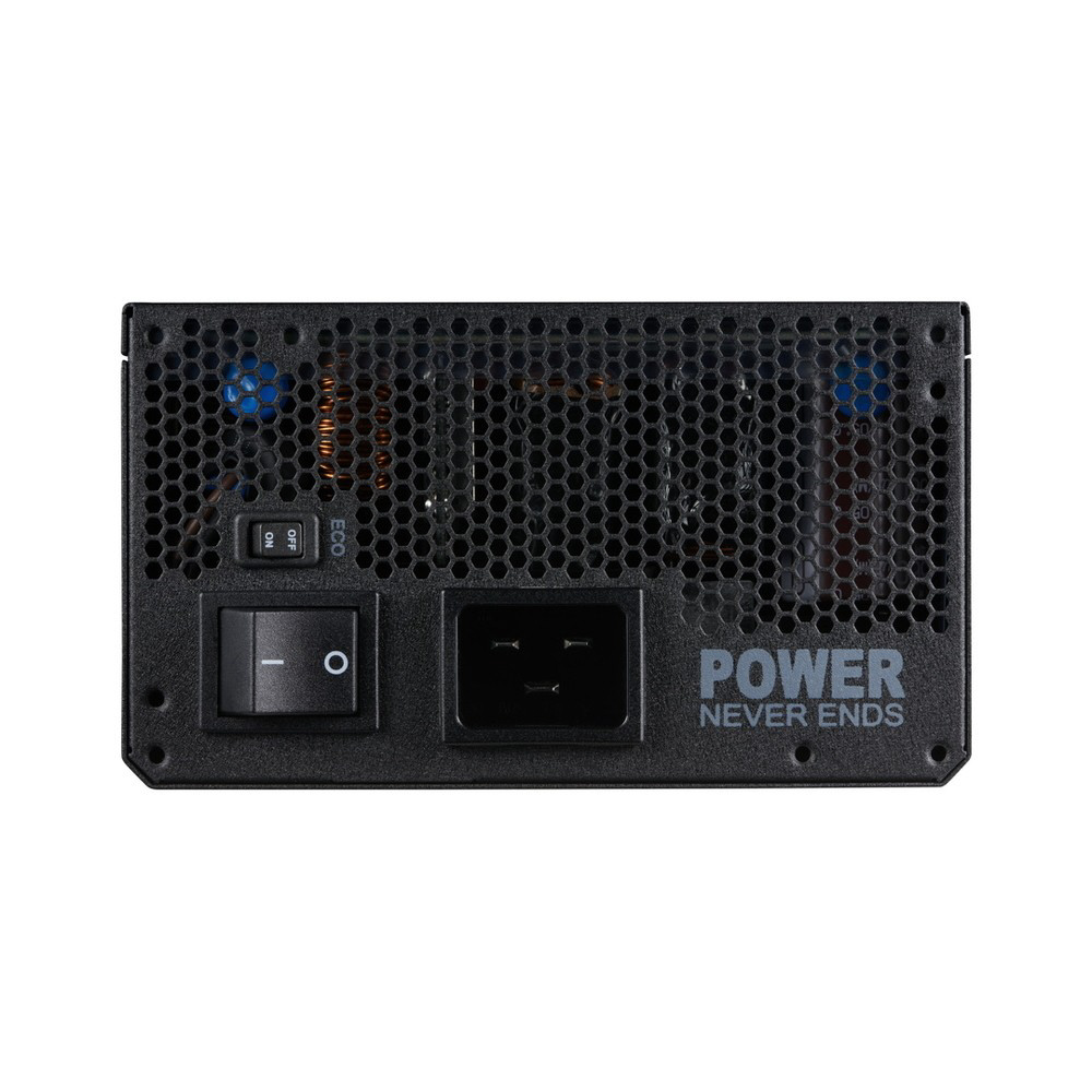 高い耐久性と静音性を備えた流体軸受け(FDB)135mmファンを内蔵し、本体のスイッチにてセミファンレス動作も可能。また、105°C対応のメインバルク・コンデンサを搭載することで、高い変換効率の上で優れた安定動作を実現します。OCP、OVP、SCP、OPP、OTP、UVPなどの保護回路を搭載しています。