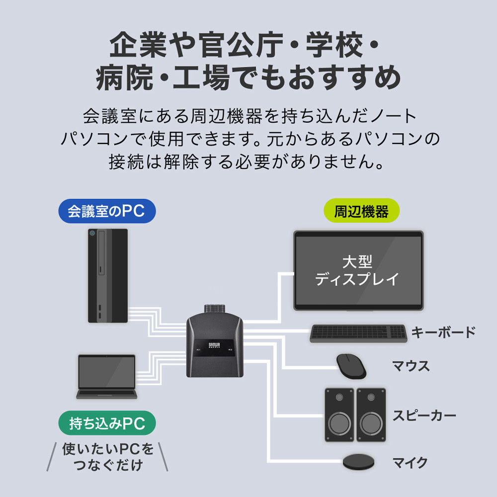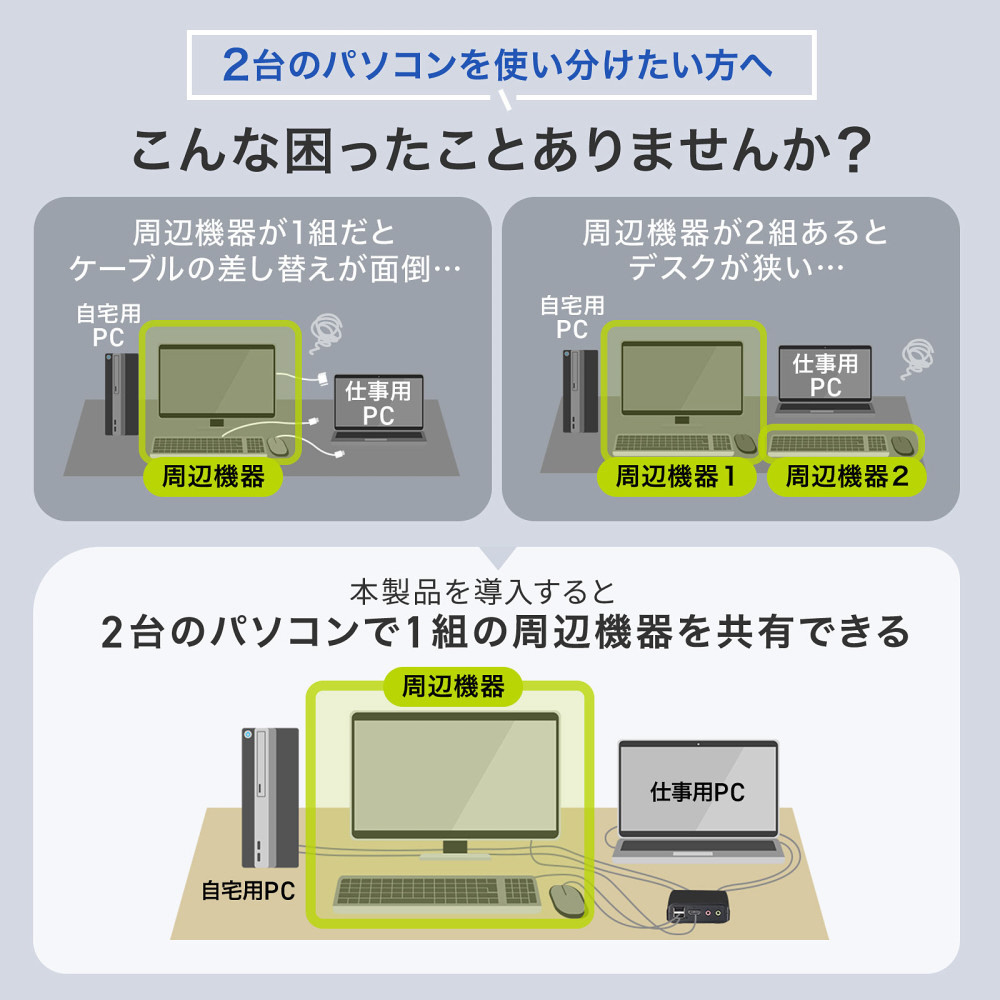 「手元スイッチ付きパソコン自動切替器(4K対応、2:1)」
