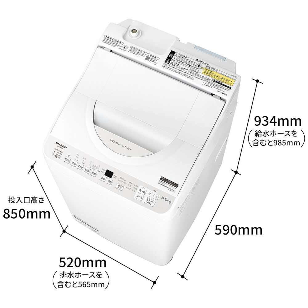 縦型洗濯乾燥機 ES-T6JBK [洗濯6.5kg /乾燥3.5kg /ヒーター乾燥(排気タイプ)] 【買い替え3000pt】