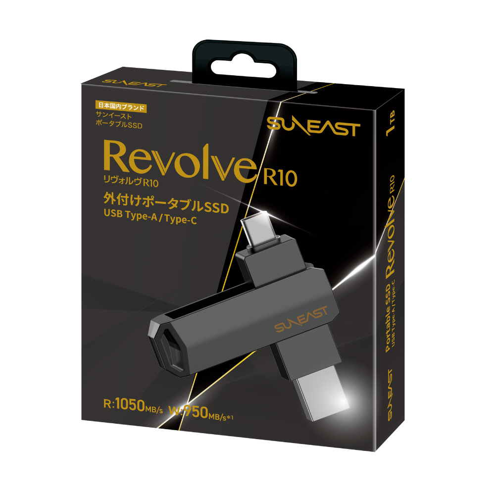 SE-PS0001T2LO1BF 外付けSSD USB-C+USB-A接続 「Revolve R10」Xbox・PS5対応(Android/iPadOS/iOS/Mac/Windows11対応) クロムブラック [1TB /ポータブル型]