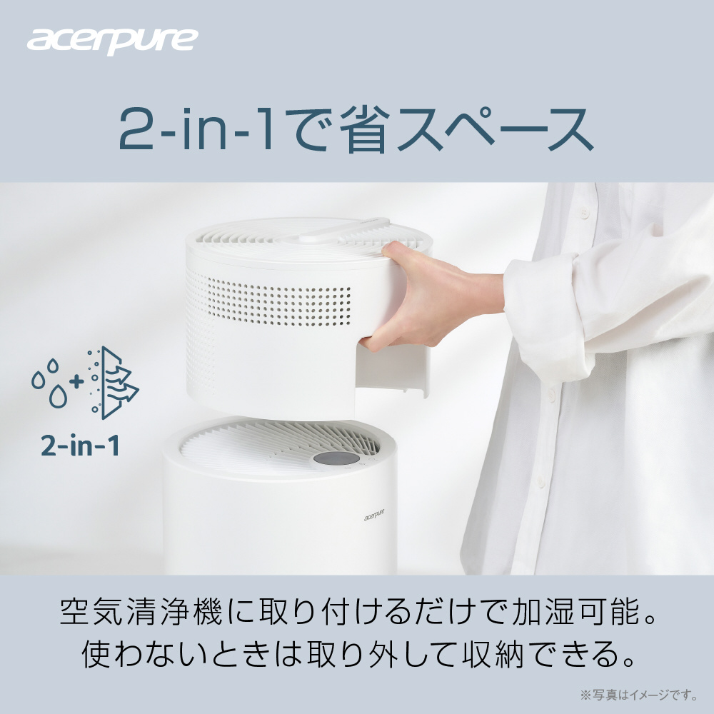 Acerpure Pro 空気清浄機に取り付けることで、省スペースで潤いのあるクリーンな空気を確保します。