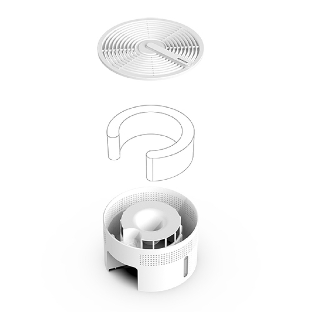 保護2:水量窓で上限の視認性を確保。保護3:外側の網目に対して内側の壁を高くすることで空気清浄機内への水の侵入を防ぎます。