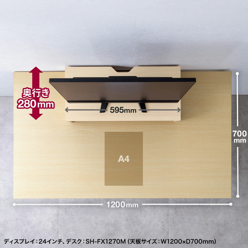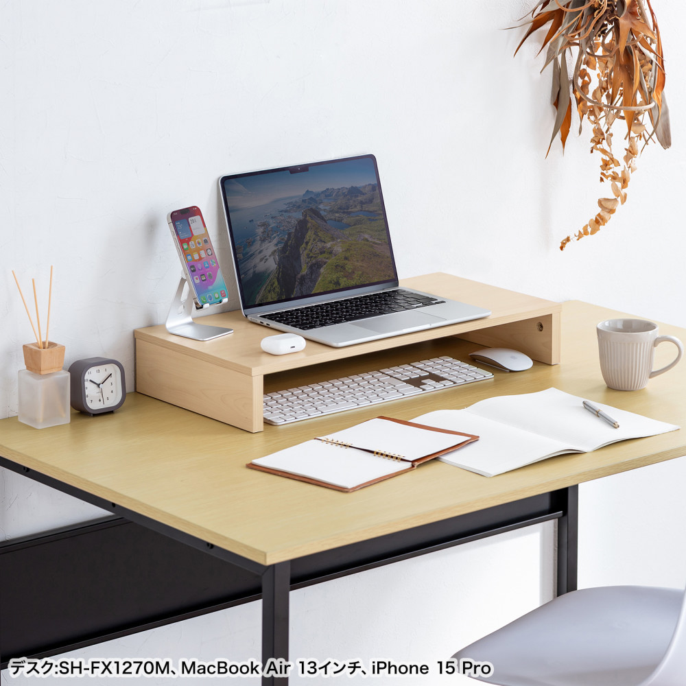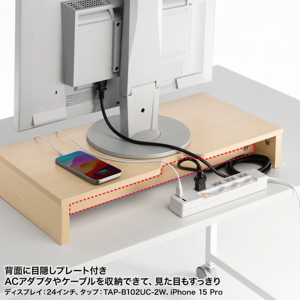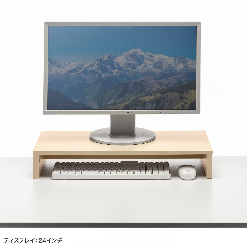液晶ディスプレイ下の空間を有効活用できるモニター台。幅595mm。