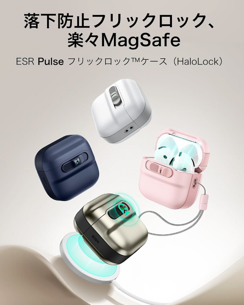 Pulse AirPods 第4世代用イヤホンケース MagSafe対応 スライド式オープン設計 ESR ブルー 1C0130202