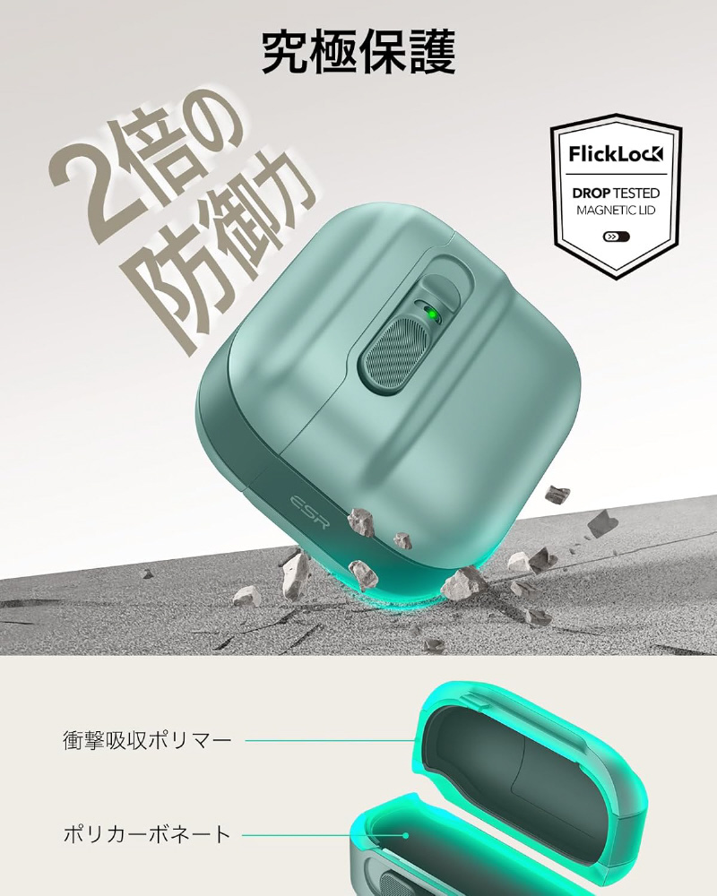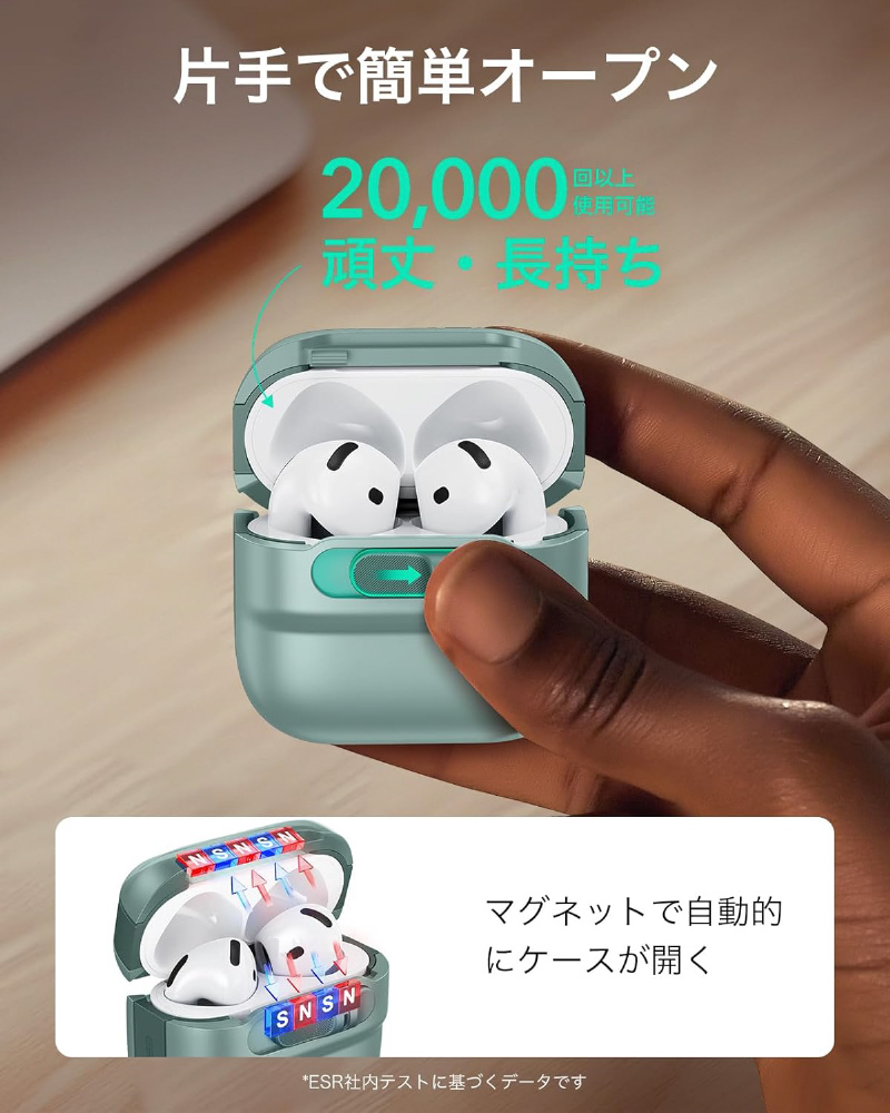 | 商品名 | Pulse AirPods 第4世代用イヤホンケース MagSafe対応 スライド式オープン設計 ESR グリーン 1C0130502 |