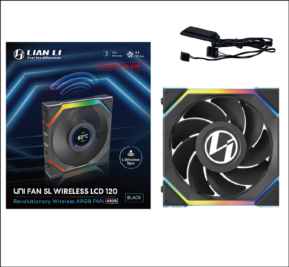 ケースファン [120mm /1900RPM] (リバースブレードモデル) UNI FAN RS SL LCD Wireless 120 BK Single Pack ブラック UF-RS-SL120-LCD-WLS-1B 【sof001】