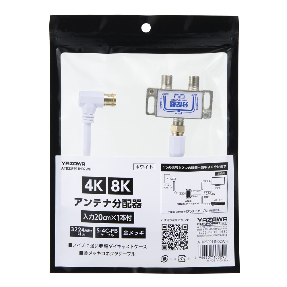 | 商品名 | アンテナ分配器IN20cm×1本ケーブル付白 ATB2SP911N02WH 新4K8K衛星放送対応 |