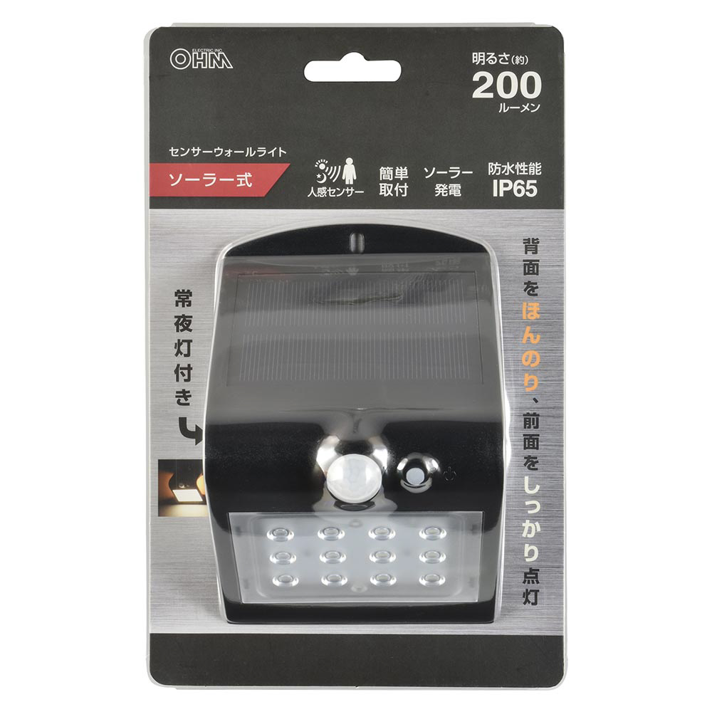 センサーウォールライトソーラー式200ルーメン オーム電機 LT-SBF22DW