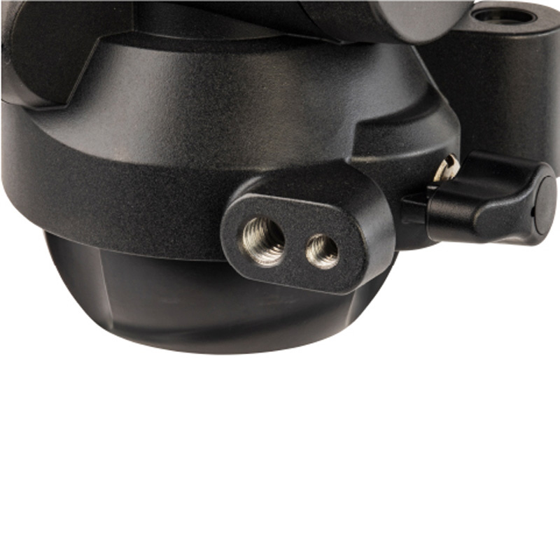 【特徴6】利便性を高めるアクセサリーポート : モニターやライトをアクセサリーアームなどで取り付けられるよう、ヘッド前面に1/4、3/8 インチのアクセサリーポートがあります。ベース部分に設けてあるのでヘッドの搭載重量や重心高、前後バランスに影響を与えません。