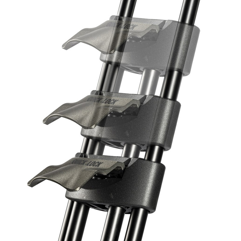 【特徴1】完全新設計のヘッド : 大幅な改良を加えた設計により、経年劣化によるパン・ティルトのガタつきが起きない構造となり、よりスムーズな動き出し、よりきれいな止め際の動作が可能となりました。また、ユーザーの利便性を高める機能も多く盛り込まれています。