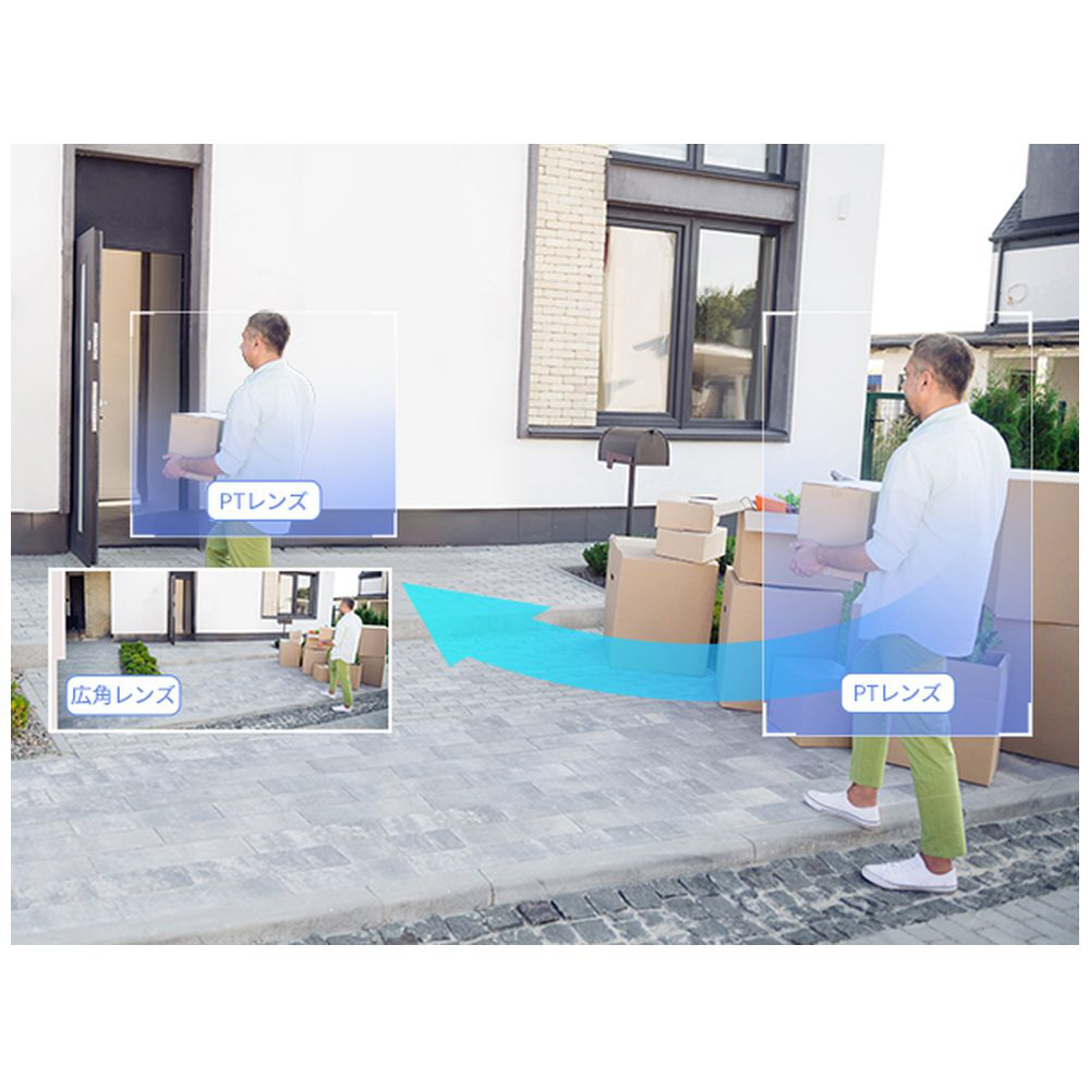 2つのレンズが2つの異なるエリアを確保するために反対側の視野角に設定されていても、チームワークによって1つのスマートな追跡タスクを完了することができます。上側のレンズで人間が検出されると、PTレンズは自動的にその角度に回転し、人間をロックオンして活動全体を記録します。