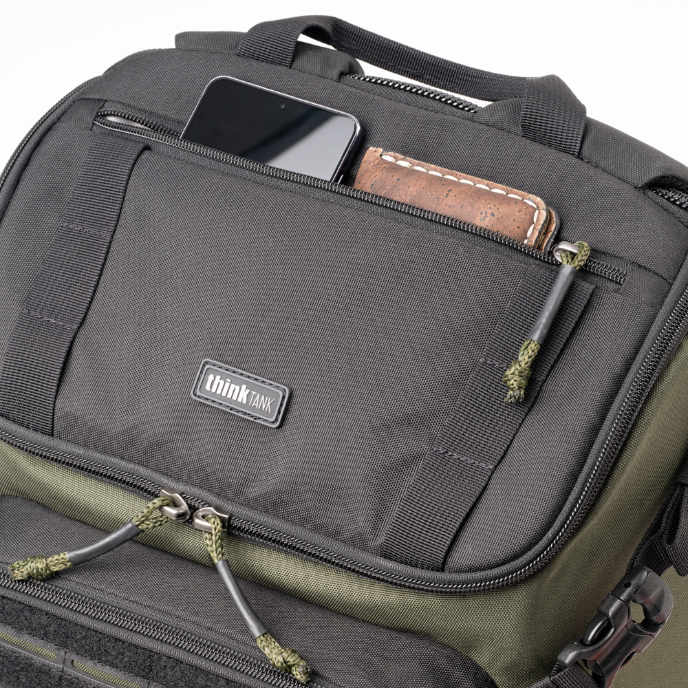 また、ジッパーで開閉する上蓋からもメインコンパートメントへアクセスができ、素早く機材の出し入れができます。