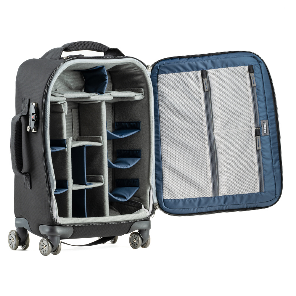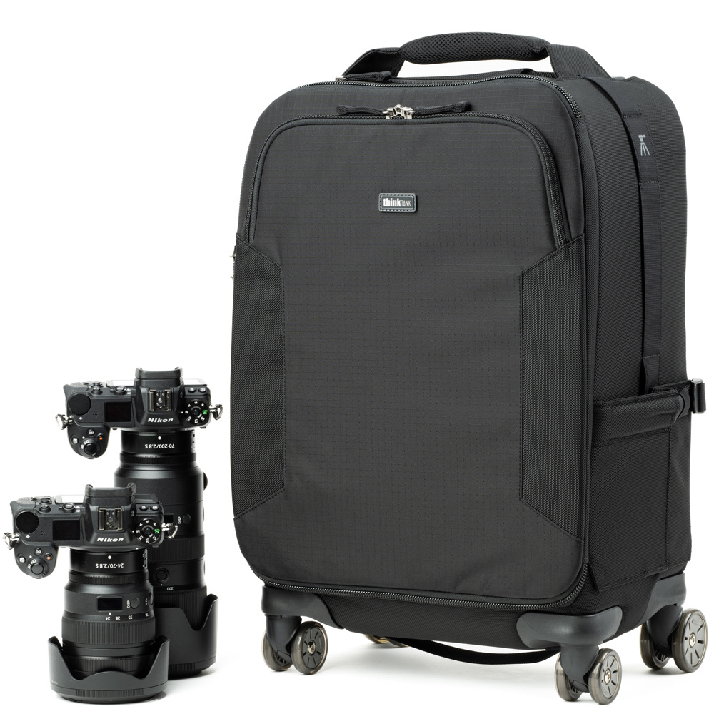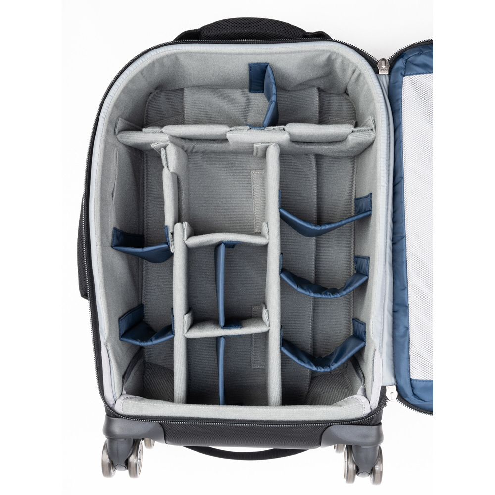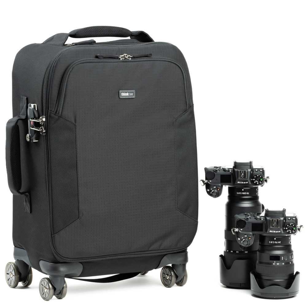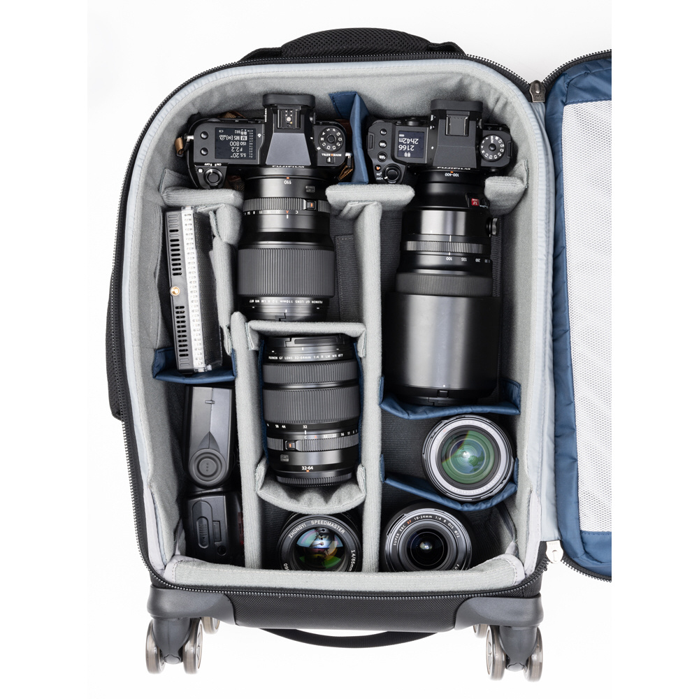 国内線100席以上の航空機に持ち込み可能なサイズで、レンズを装着したグリップ付き一眼レフ1台と中型一眼レフ1台、レンズ数本が収納できます。